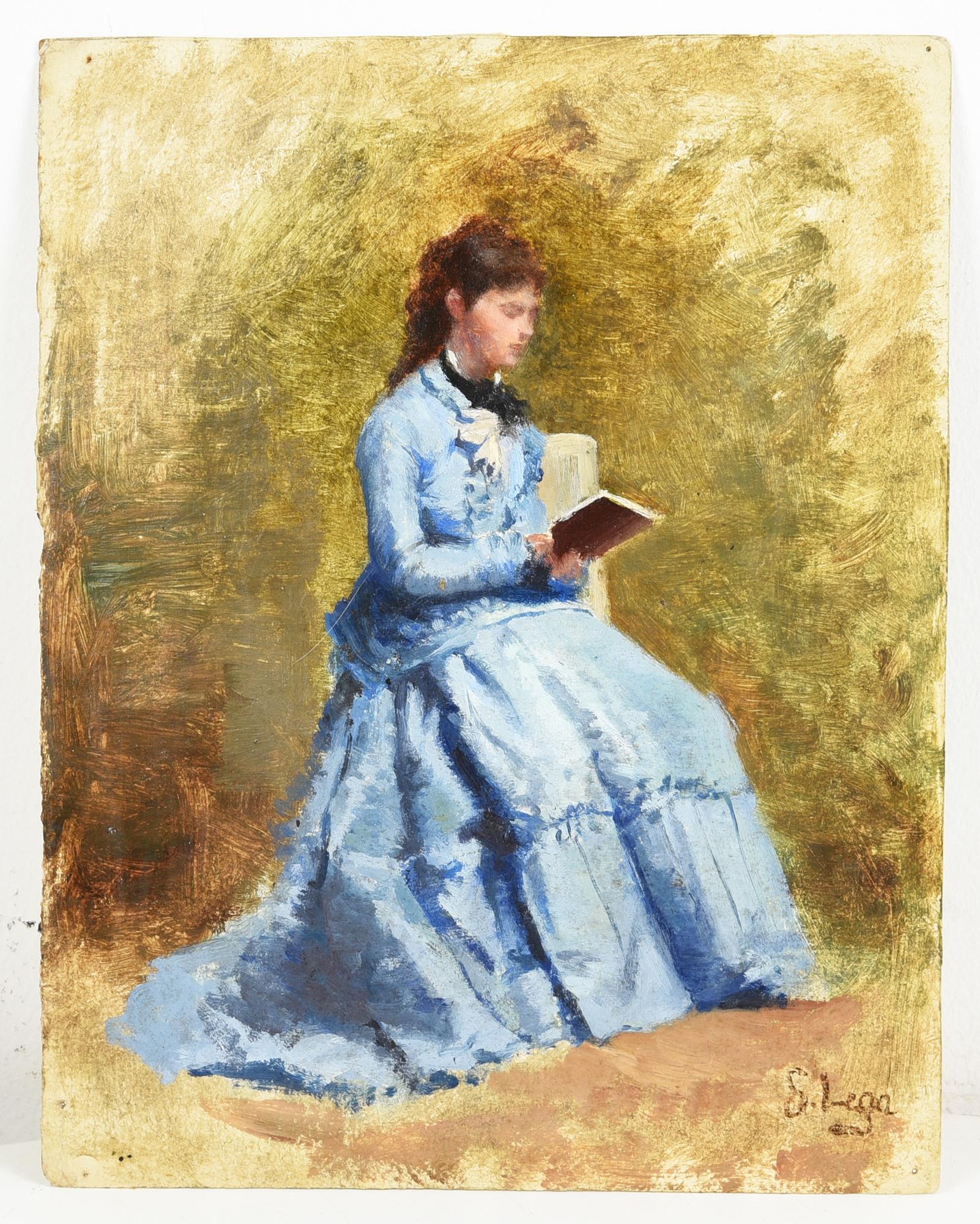 a firma S. Lega LA LETTRICE olio su cartone, cm 27x21 firma S. Lega sul...