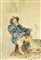 Camillo Miola MOSCHETTIERE grafite e acquerello su carta applicata su...