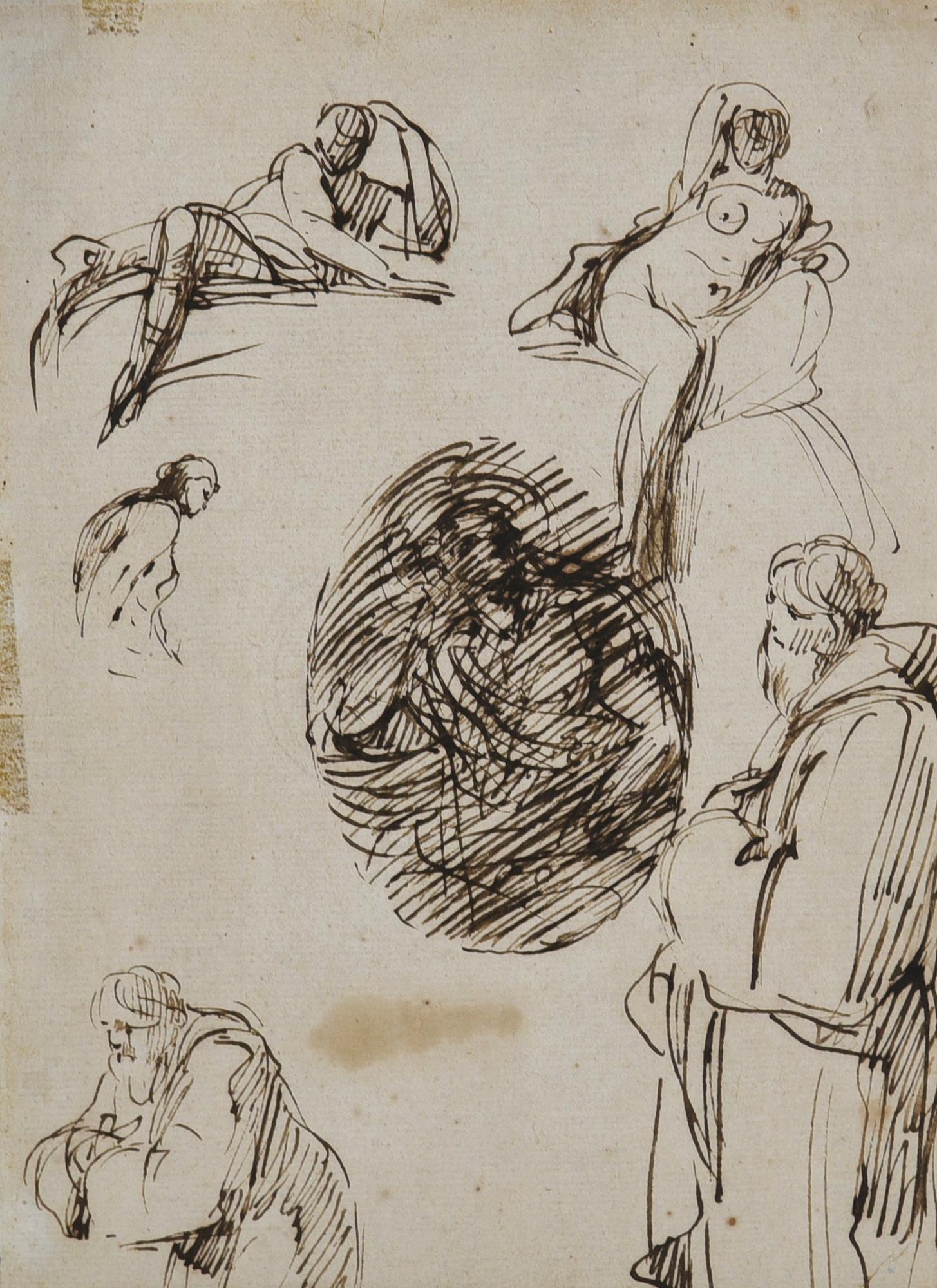 attribuito a Filippo Agricola STUDI DI FIGURE E NUDI inchiostro su carta...