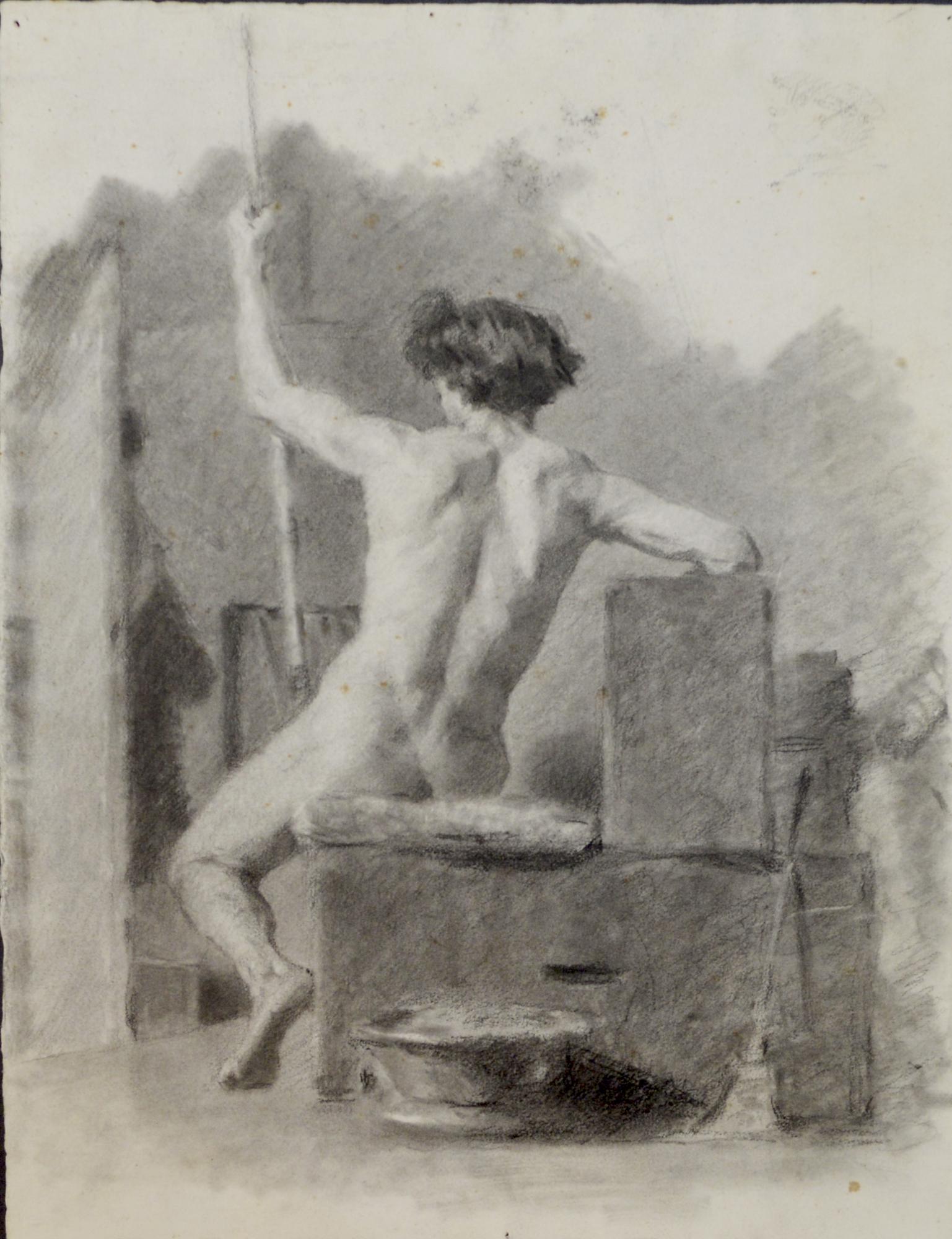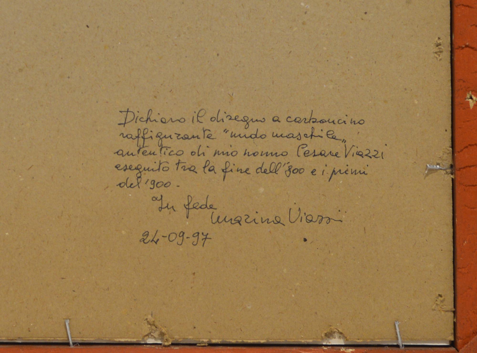 Cesare Viazzi NUDO MASCHILE carboncino su carta, cm 37,5x27 sul retro:...