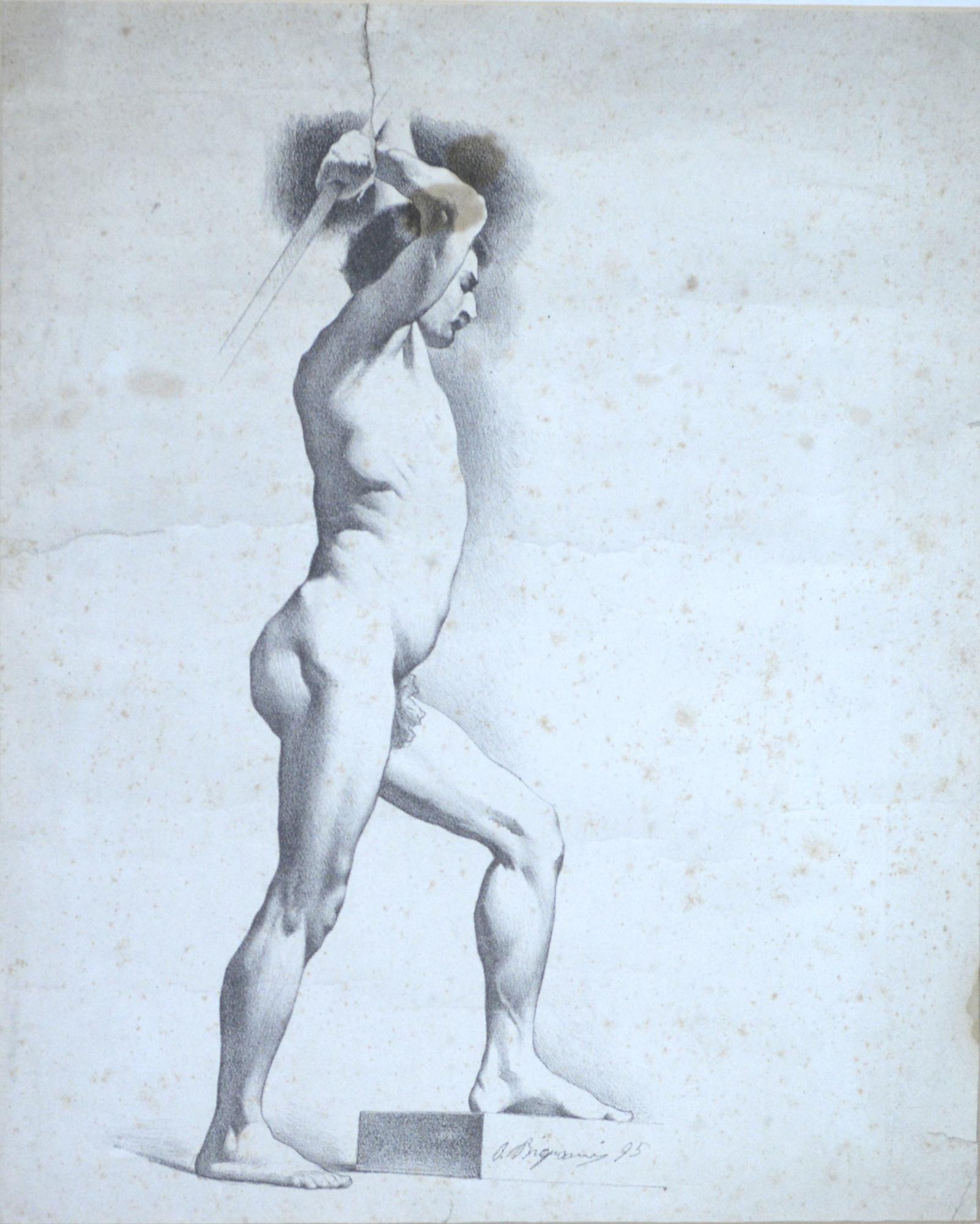 Scuola del XIX secolo NUDO MASCHILE DI PROFILO matita su carta, cm 32x25...