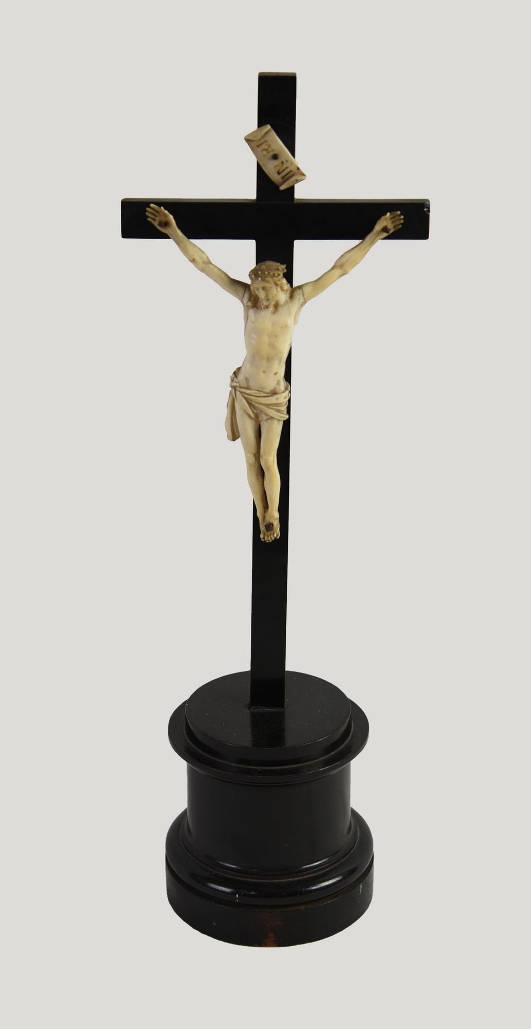 Scuola del XVII secolo CRISTO CROCIFISSO avorio, h cm 14,5, con croce h cm 43