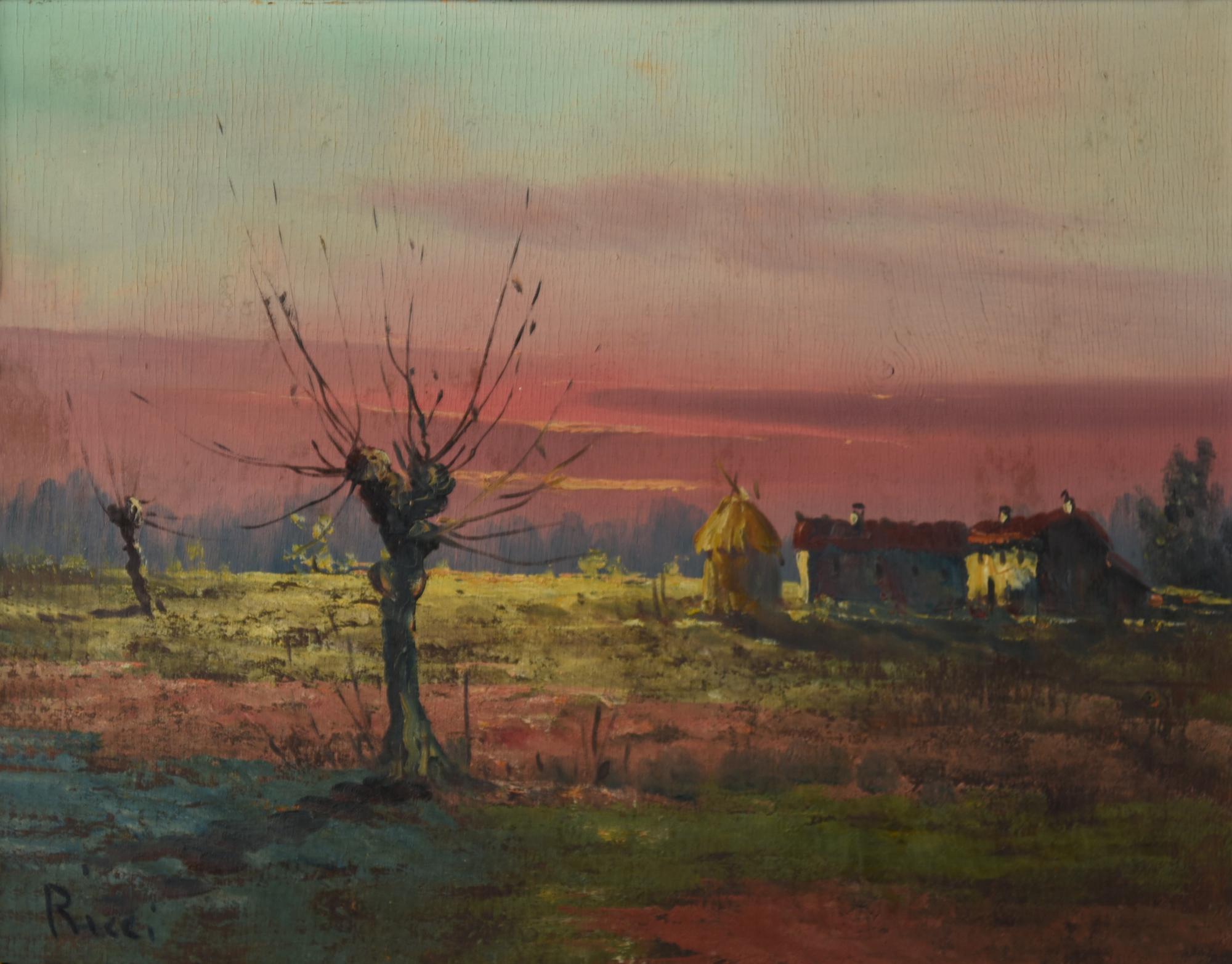 Scuola del XIX secolo - inizi XX secolo A firma Ricci VEDUTA DI CAMPAGNA AL...