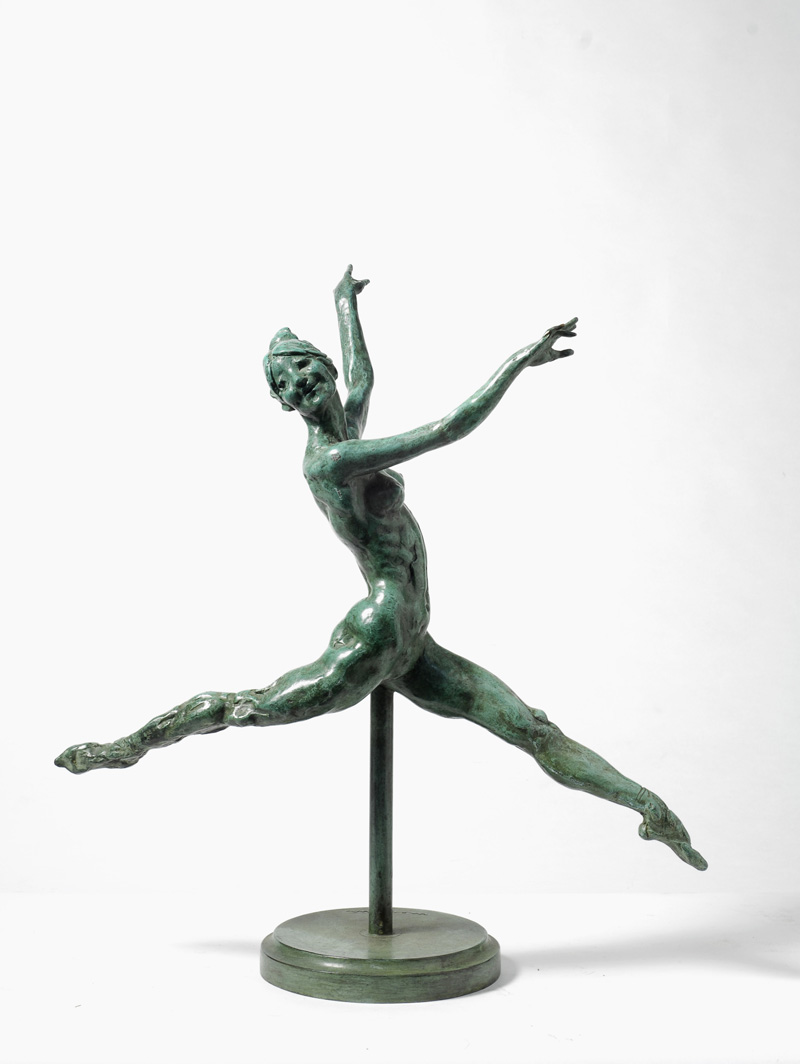Francesco Messina (Linguaglossa, 1900 - Milano, 1995) BALLERINA SU BASE CIRCOLARE Bronzo con patina verde, cm. 51x46 Firma alla base.