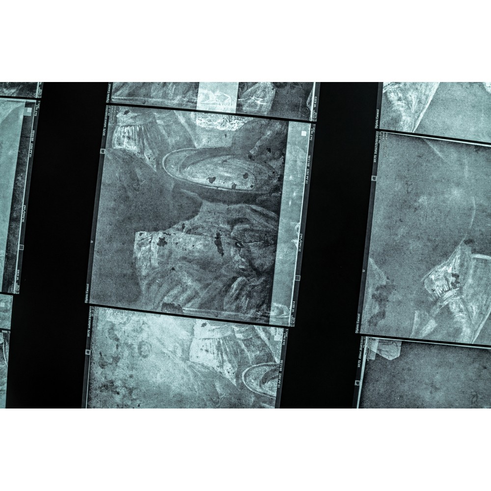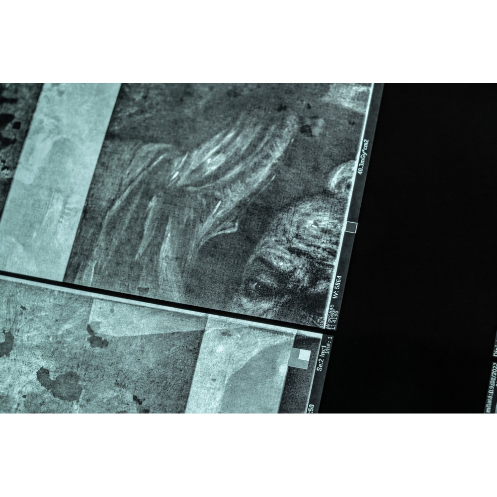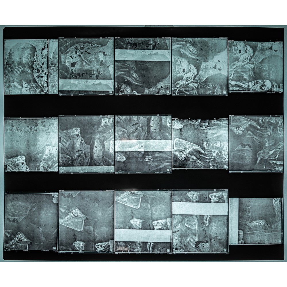 Interessante e rara iconografia caratterizzata dalla presenza di volti caricaturali che traspaiono al di sotto del film pittorico.