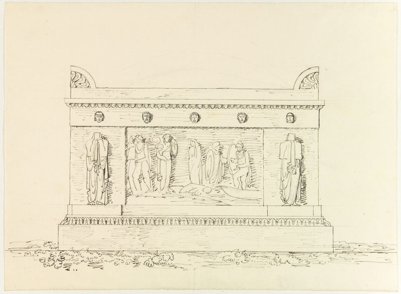 Fortunato Duranti (1787-1863). Studio di sarcofago con figure piangenti. 1830...