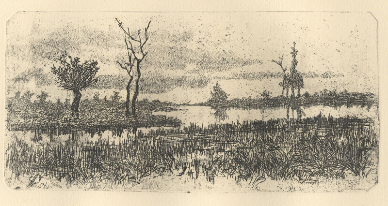 Giovanni Fattori (1825-1908). Nel piano di Pisa. Seconda metà del XIX secolo. Acquaforte su zinco. mm 105x205. Foglio: mm 385x510. BABONI-MALESCI, tav. XLVI. Firmata in lastra in basso a sinistra.Timbro a secco "Centenario Gio. Fattori 1925". Esemplare appartenente alla tiratura Benaglia, eseguita nel 1925 in occasione del centenario della nascita. Stampata su carta avorio con filigrana, margini intonsi.