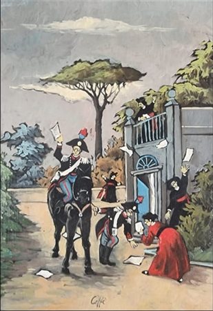 Nino Caffè Olio su tavola 24,7x17 Carabiniere a cavallo 1961 Archivio su foto
