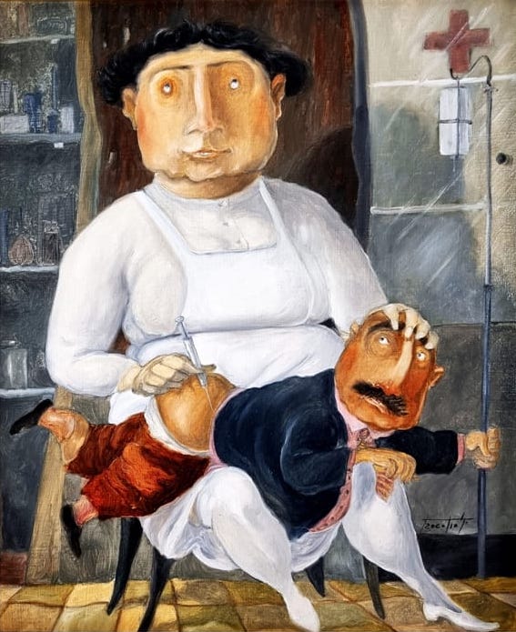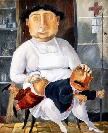 Pino Procopio Olio su tela 35x30 La grande infermiera 2000 autentica dell'artista su foto