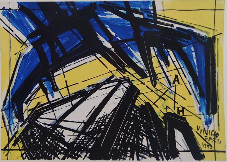 Vinicio Berti Pittura su tela 50x70 Antagonista A-H 1972 Autentica su foto