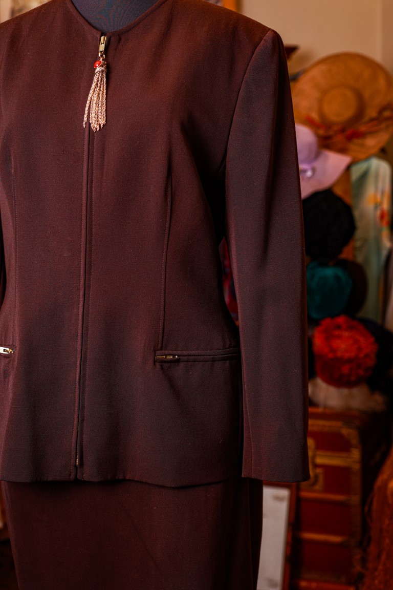 composto da giacca, con chiusura a zip, e gonna