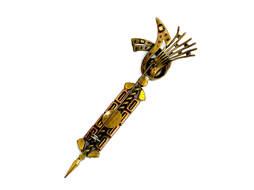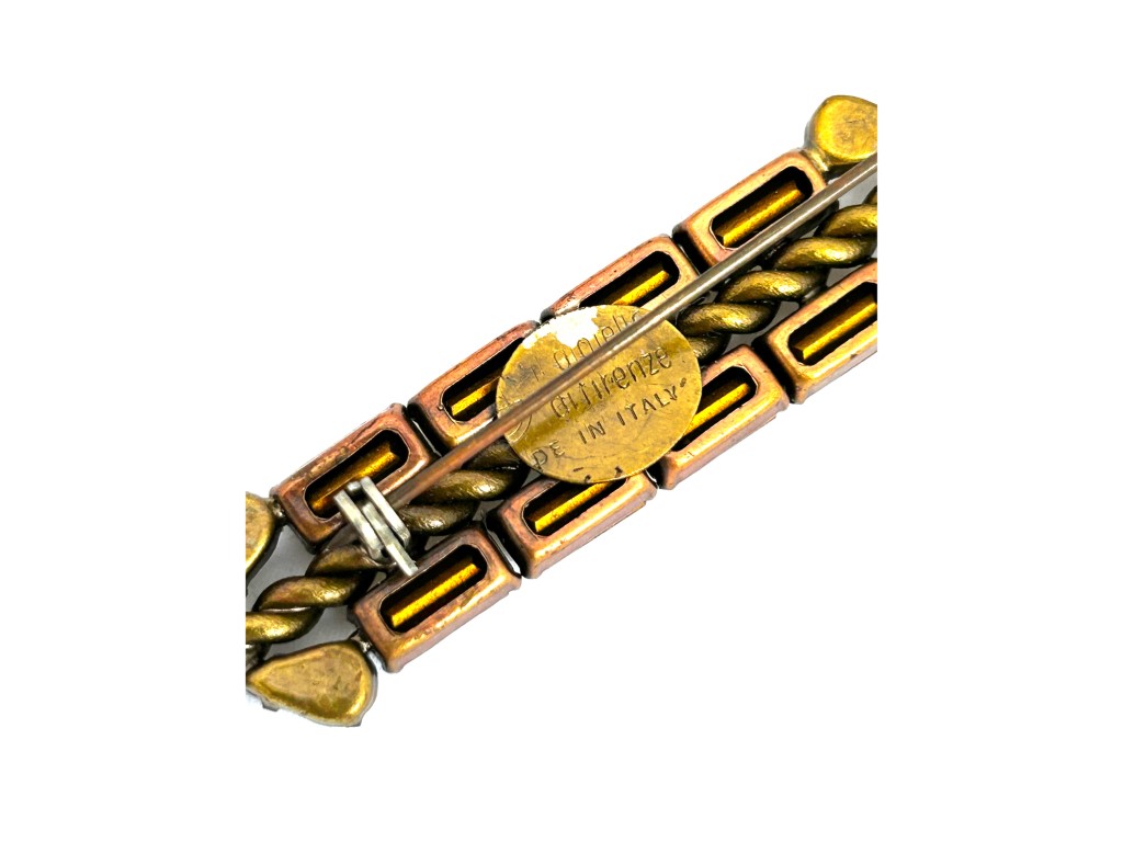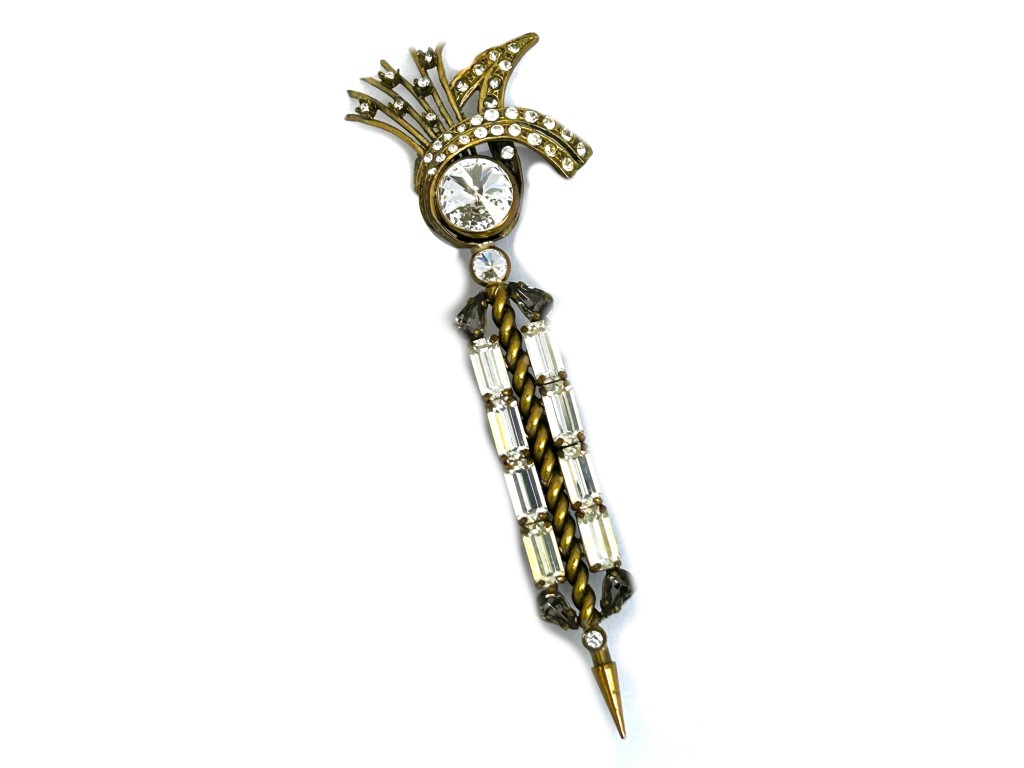 Gioiello di Firenze, spilla in metallo dorato, strass e cristalli