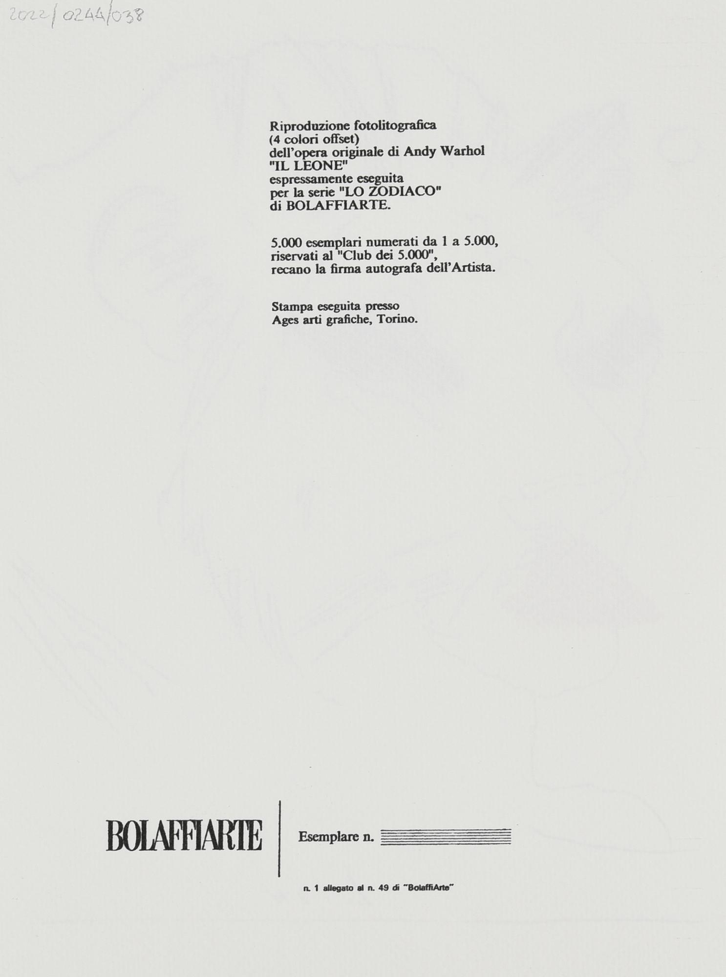 After Andy Warhol LION riproduzione fotolitografica a 4 colori offset su...