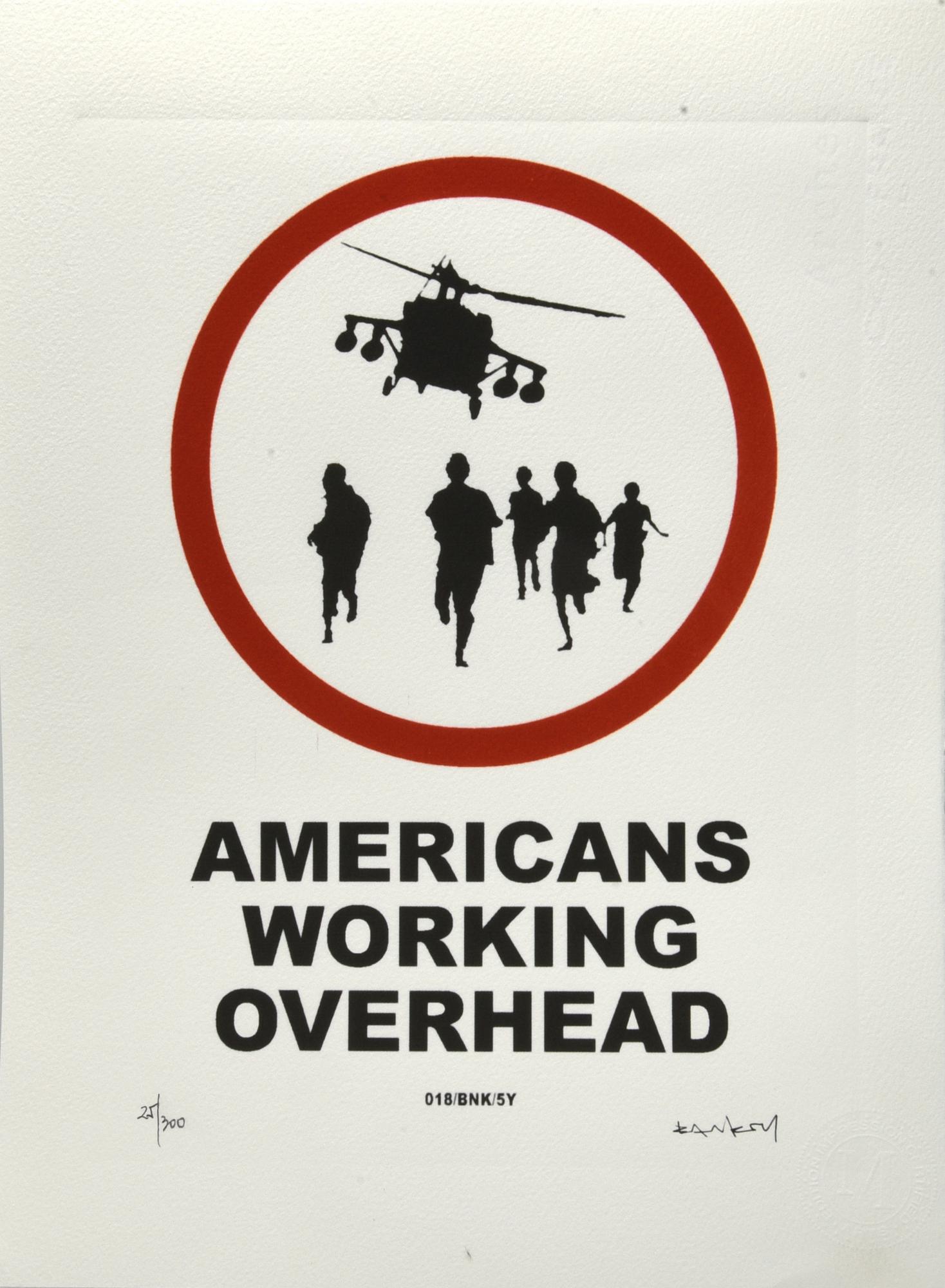 Da Banksy AMERICANS WORKING OVERHEAD eliografia su carta Arches, cm 38x28,5;...