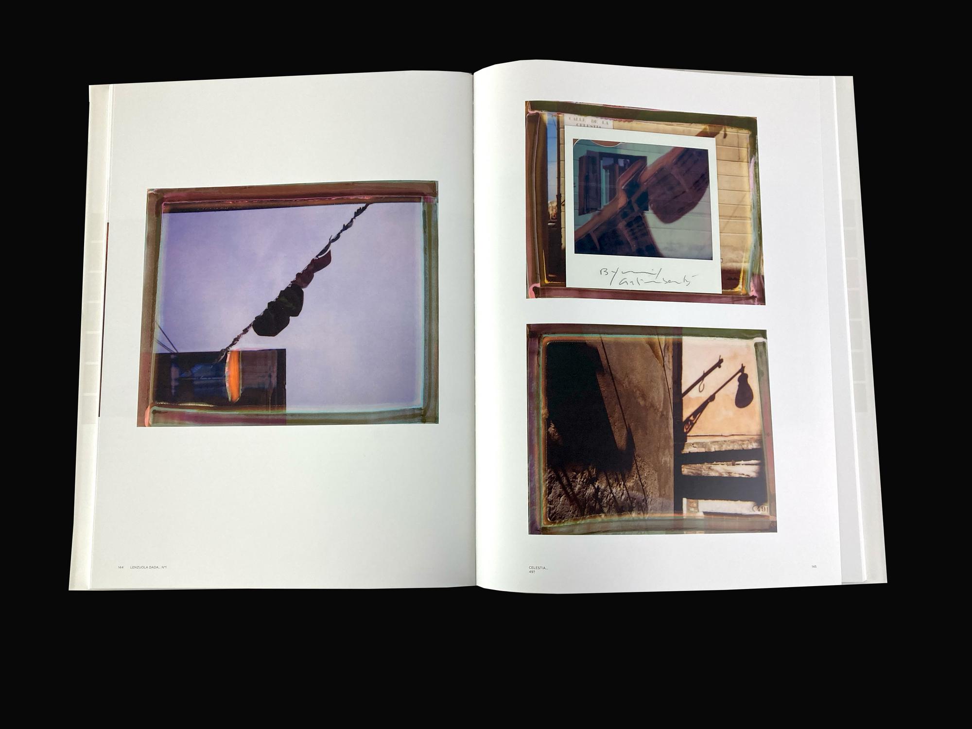 polaroid singola operata applicata su catalogo a pagina 145, catalogo aperto cm 34x50x2