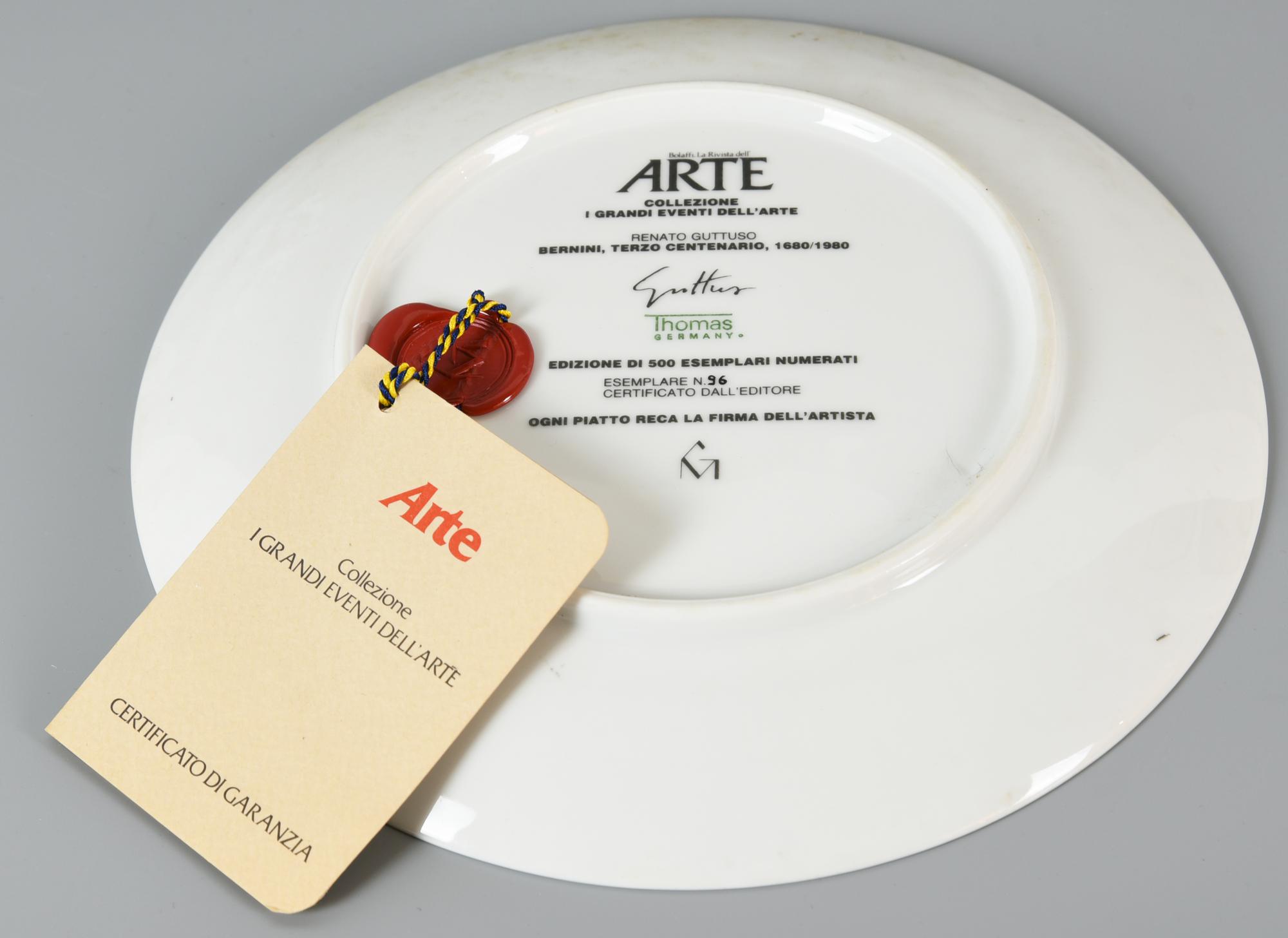 Renato Guttuso RENATO GUTTUSO, PIATTO TERZO CENTENARIO COMMEMORATIVO BERNINI...