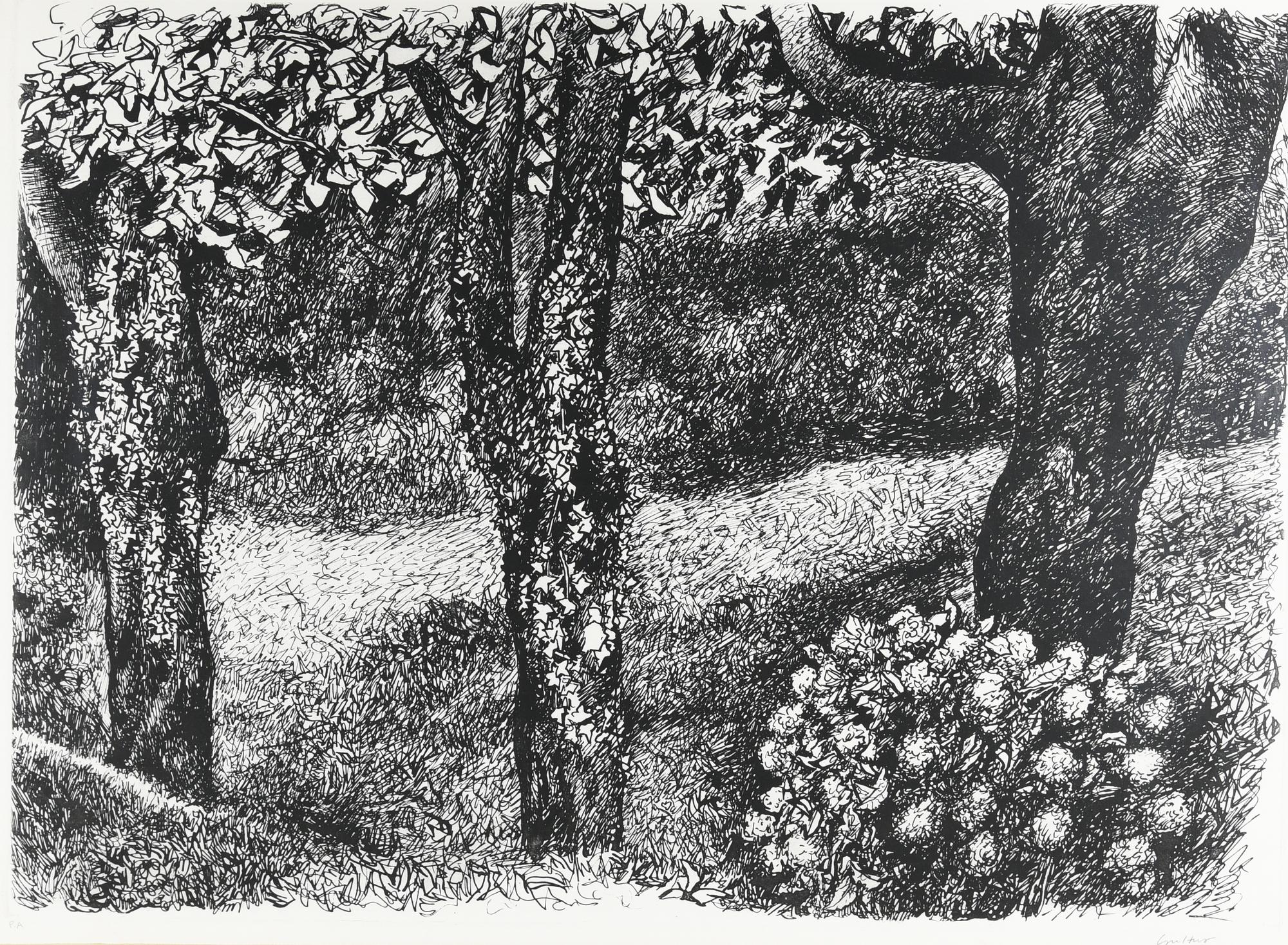 Renato Guttuso BOSCO DI VELATE acquaforte, cm 54,5x75, su foglio cm 70x89;...