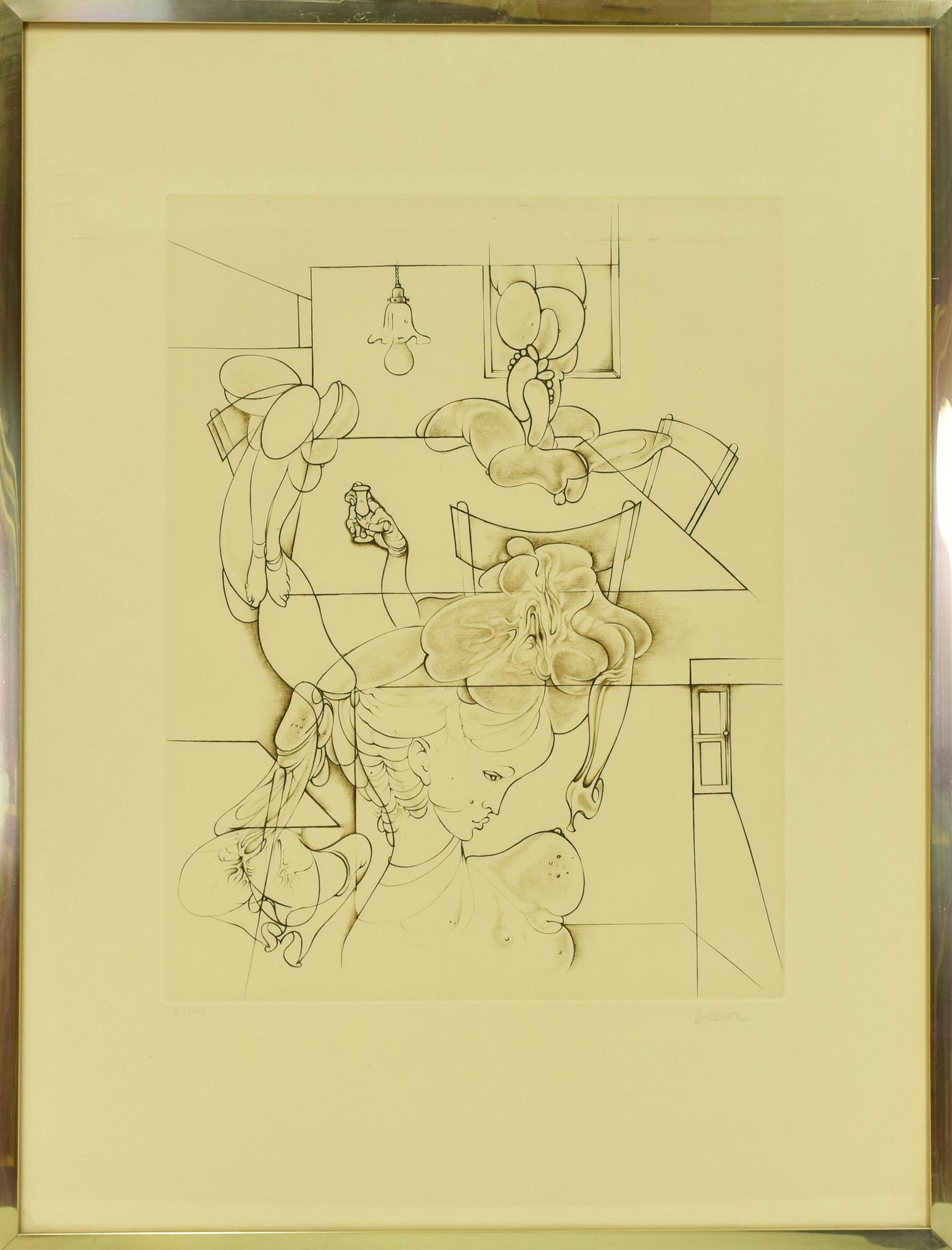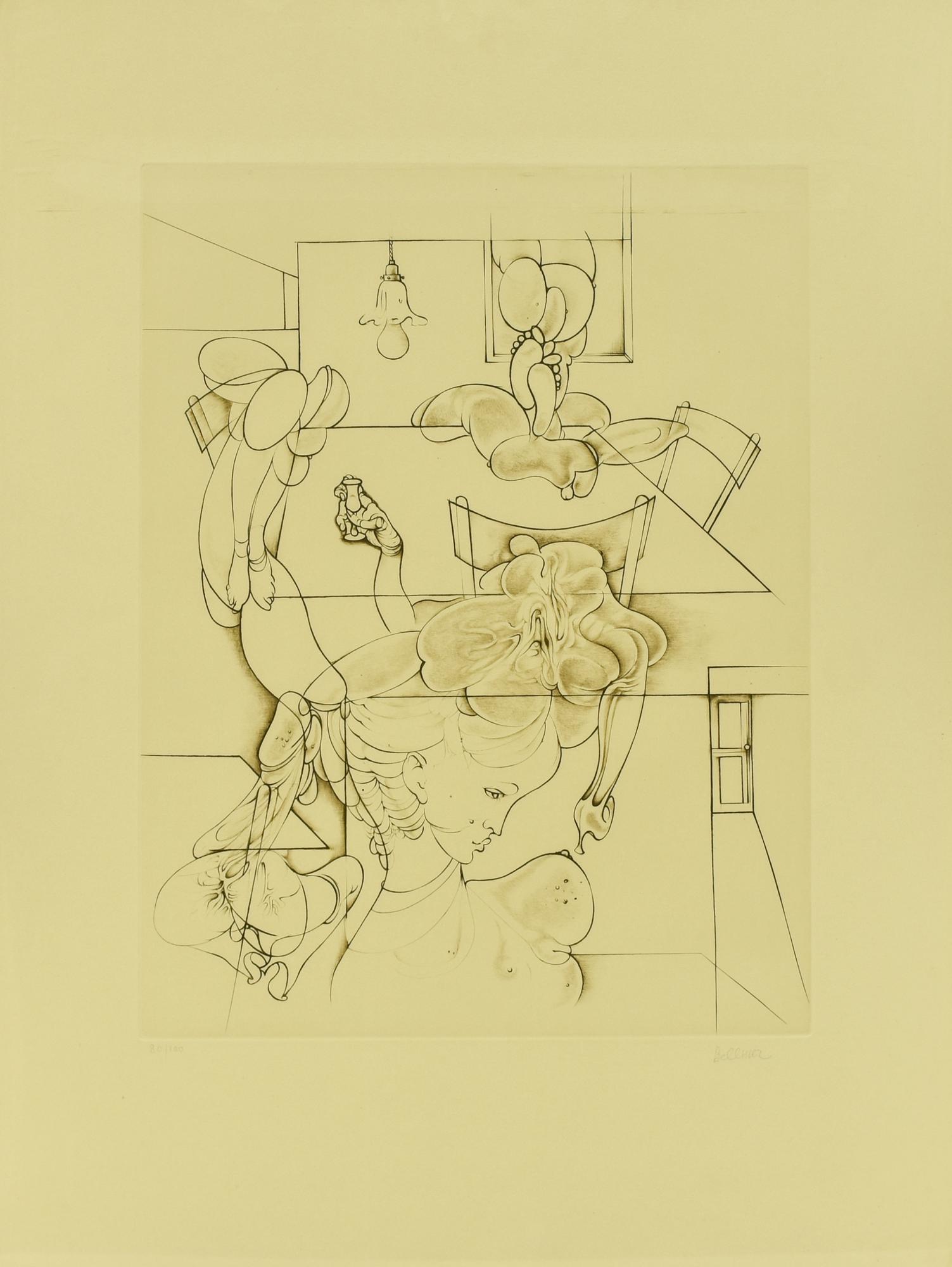 Hans Bellmer SENZA TITOLO acquaforte su carta, battuta cm 50x38, su foglio cm...