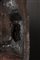 Legno duro a patina scura, bitume e pigmenti, peli animali e fibra.