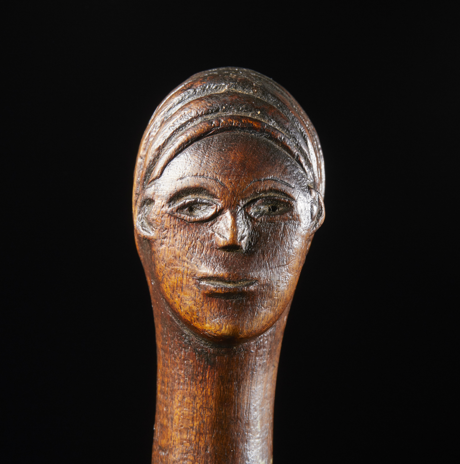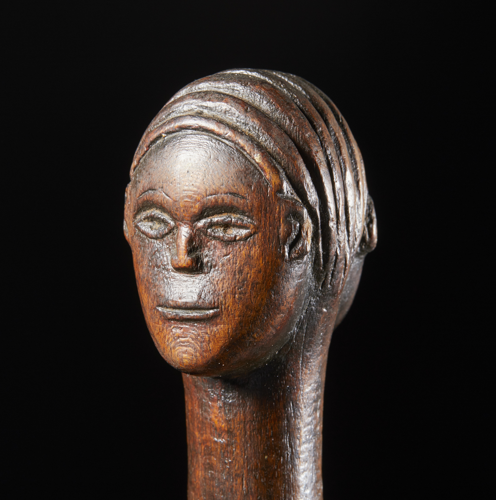 Arte africana - Repubblica Democratica del Congo, Angola - Chokwe o Lwena. Bastone gianiforme. Legno duro a patina naturale. Difetti visibili e segni d'uso.