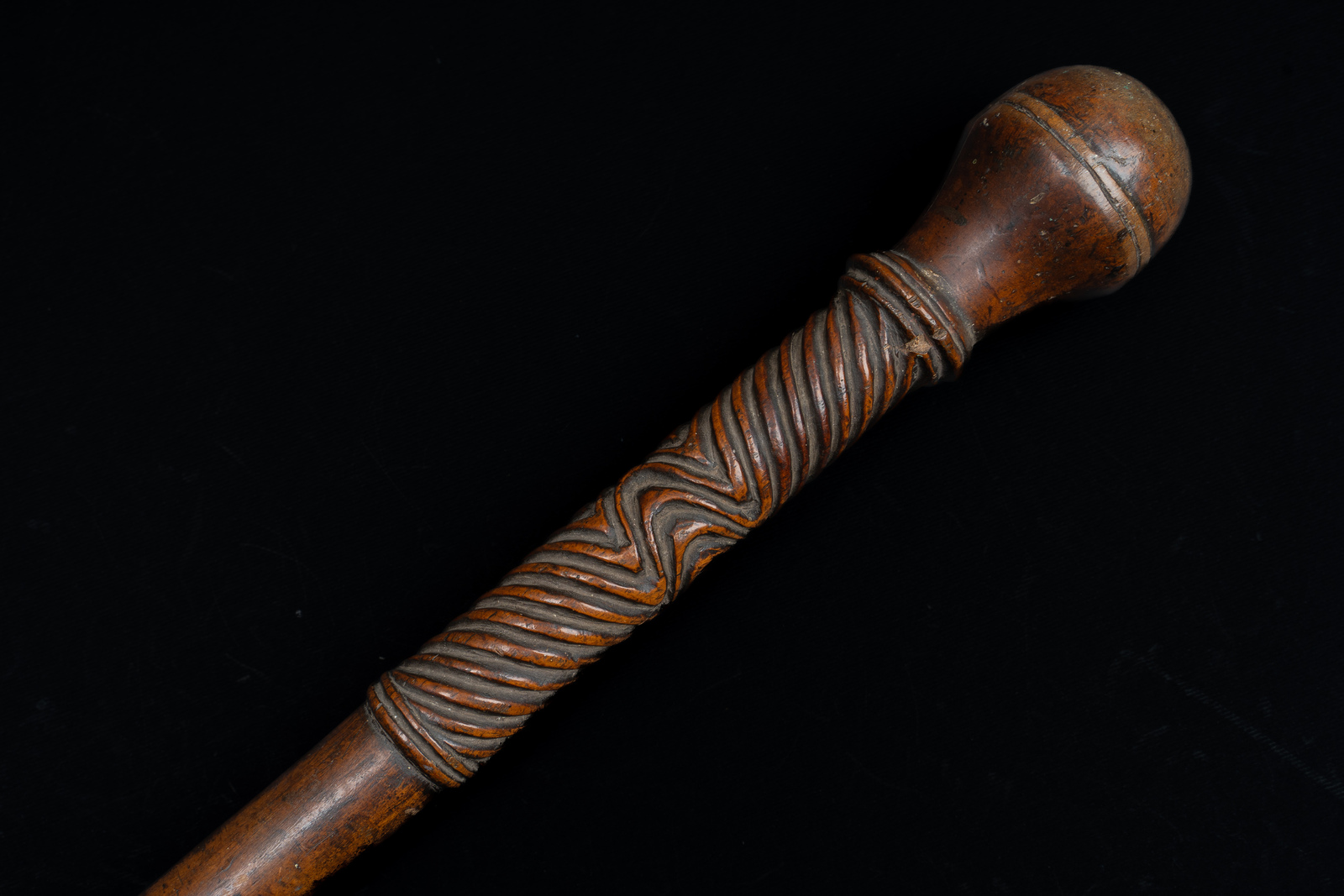 Arte africana - Sud Africa - Zulu. Bastone e insegna di rango probabilmente da avant-courier. Legno duro a patina lucida, puntale in ottone. Segni d'uso.