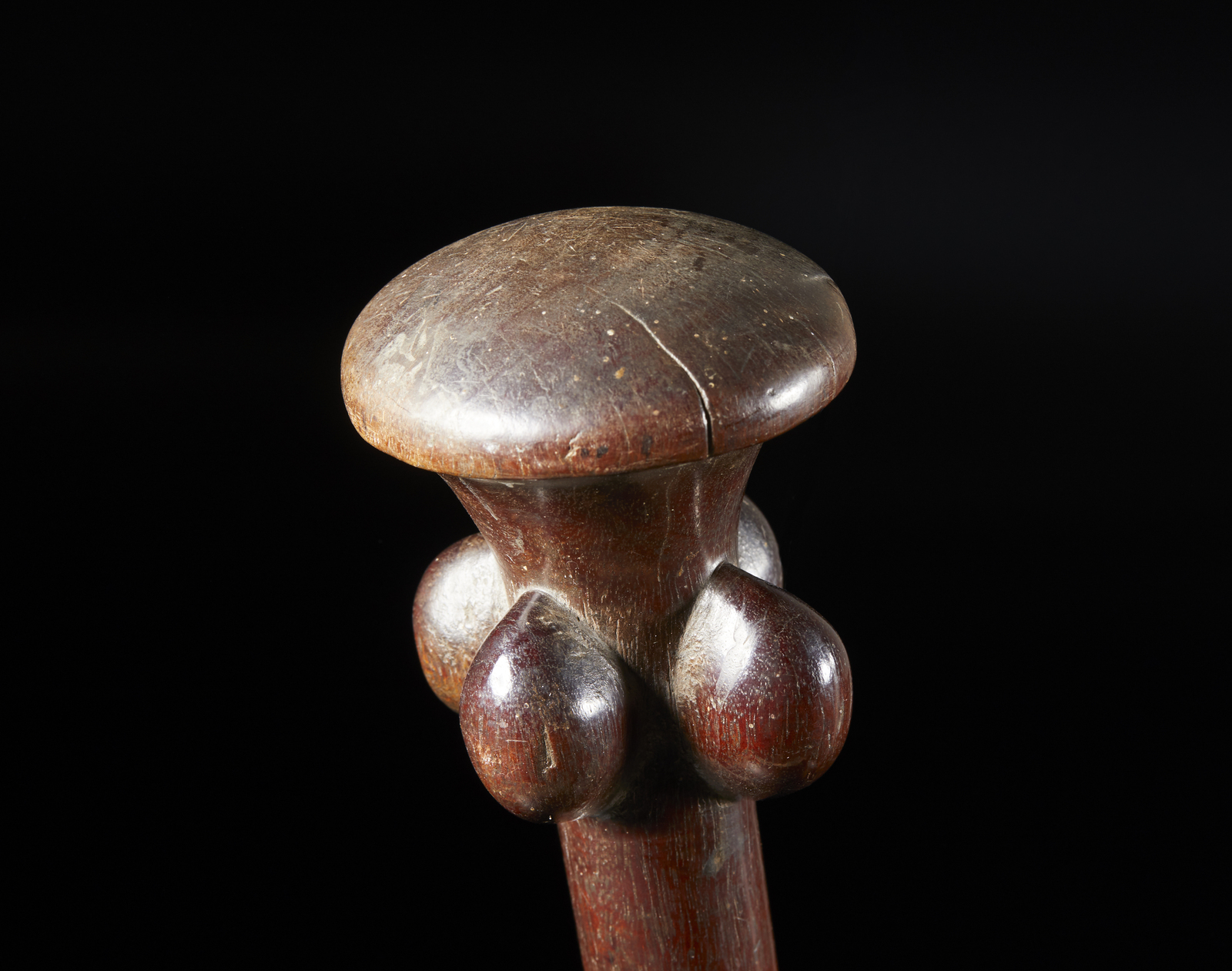 Arte oceanica - Isole Fiji. Mazza da guerra ed insegna di rango. Legno duro a patina rossastra. Segni d'uso.