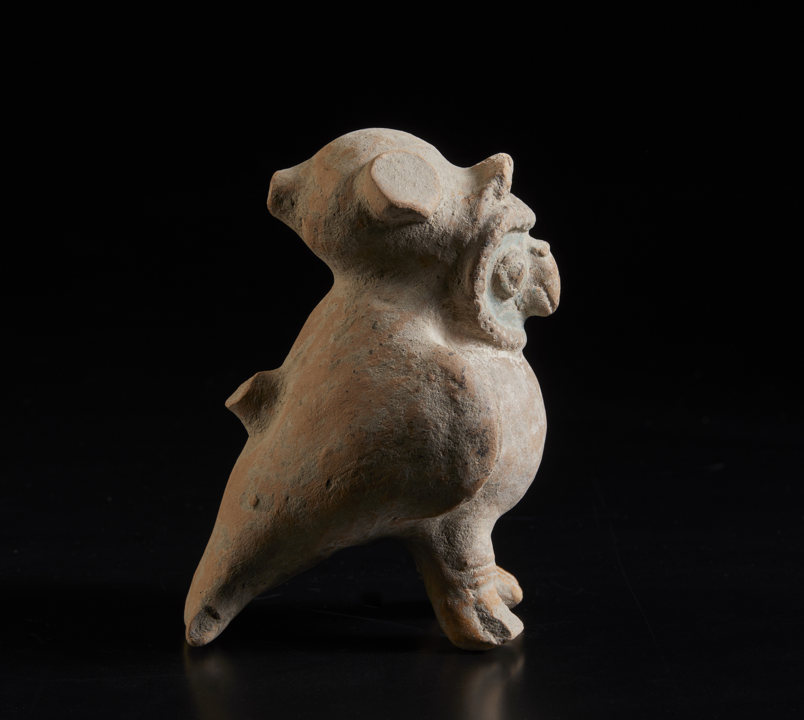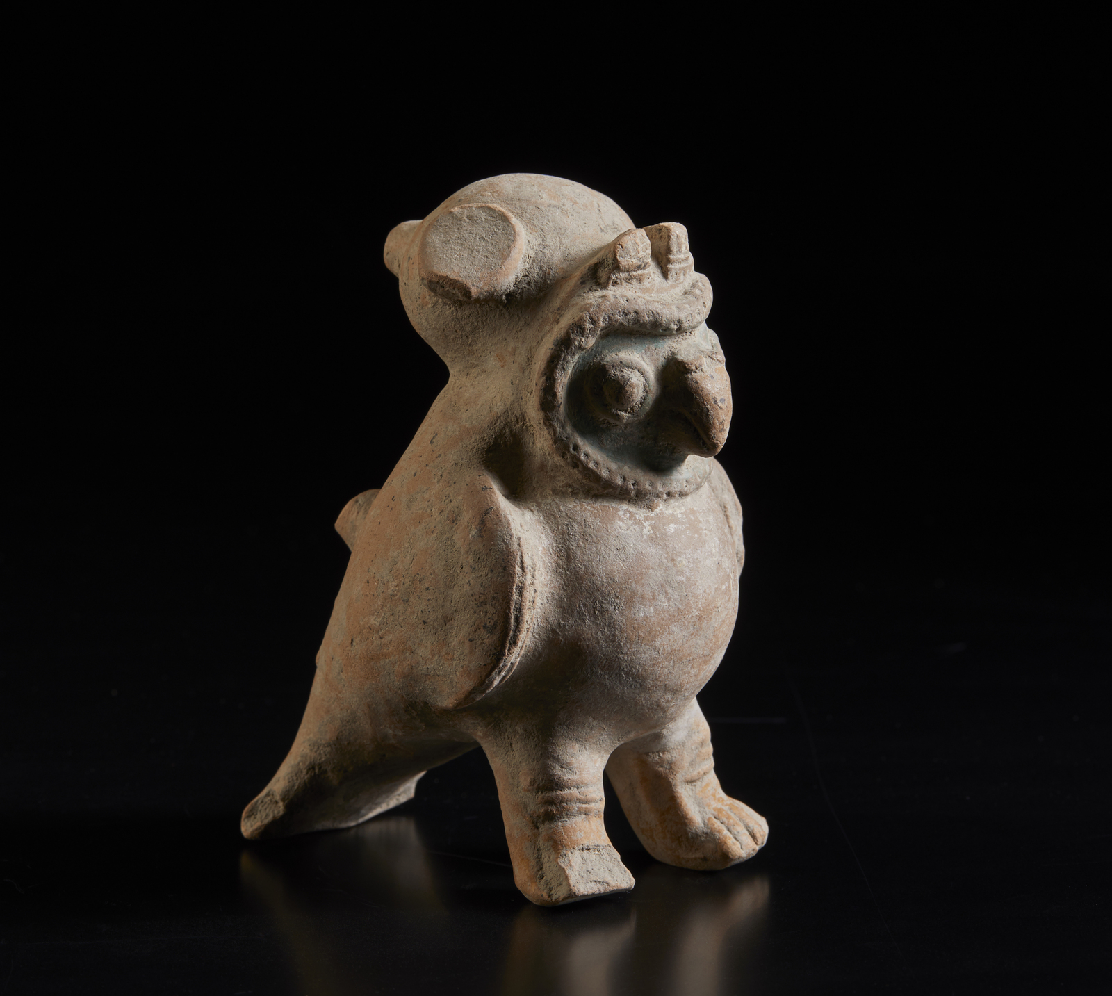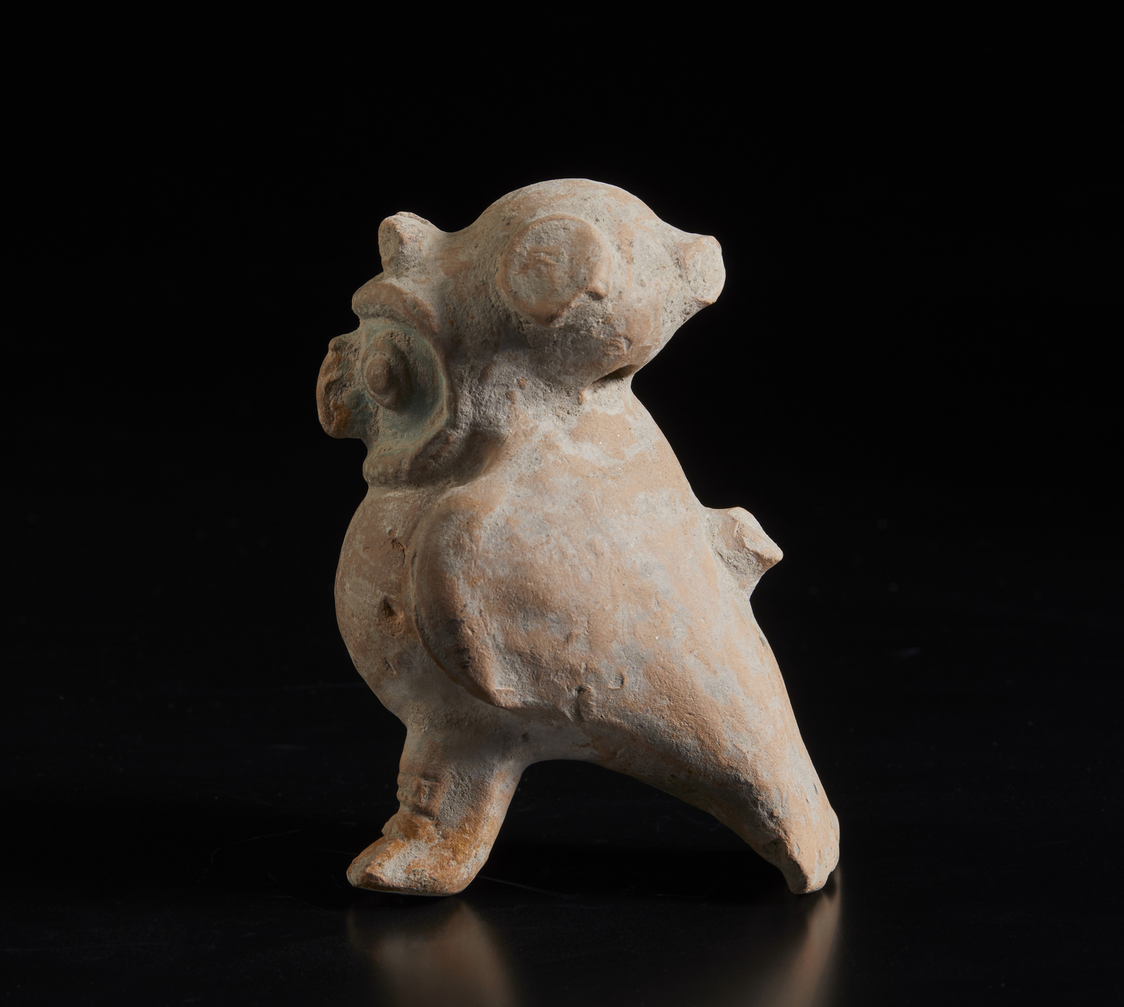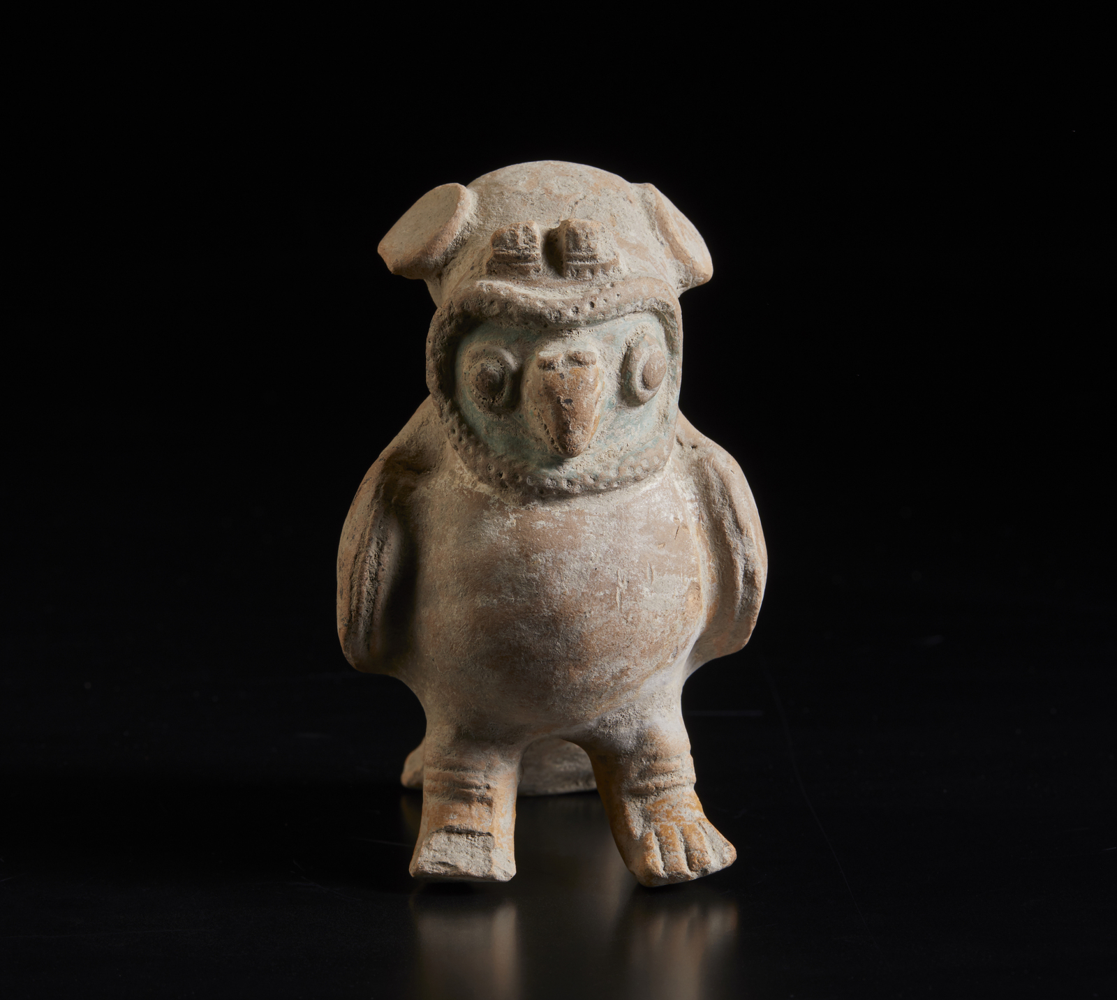 Arte dell'America del Sud - Ecuador- Jama- Coaque. Fischietto in forma di gufo in terracotta policroma. 300 a.C. - 800 d.C. .