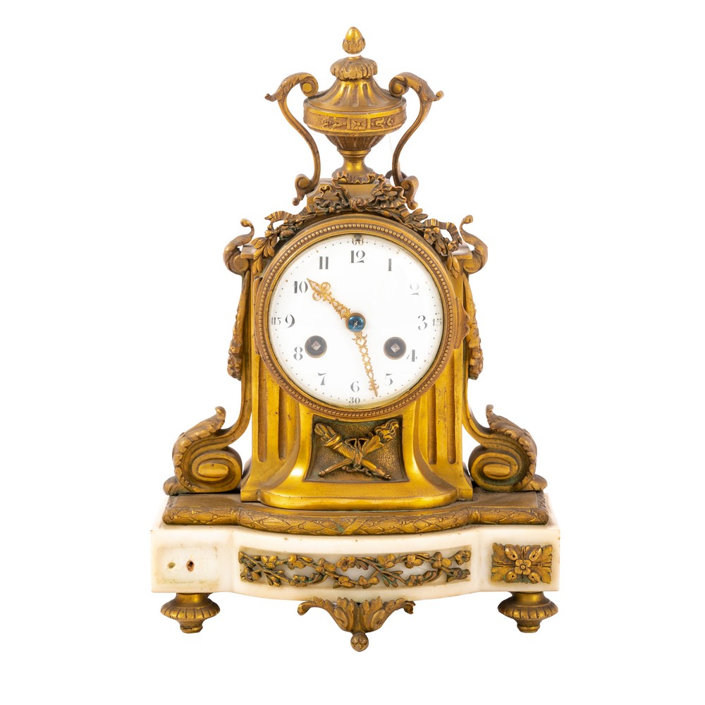 PARIGINA da tavolo in bronzo con base in marmo bianco e fregi.