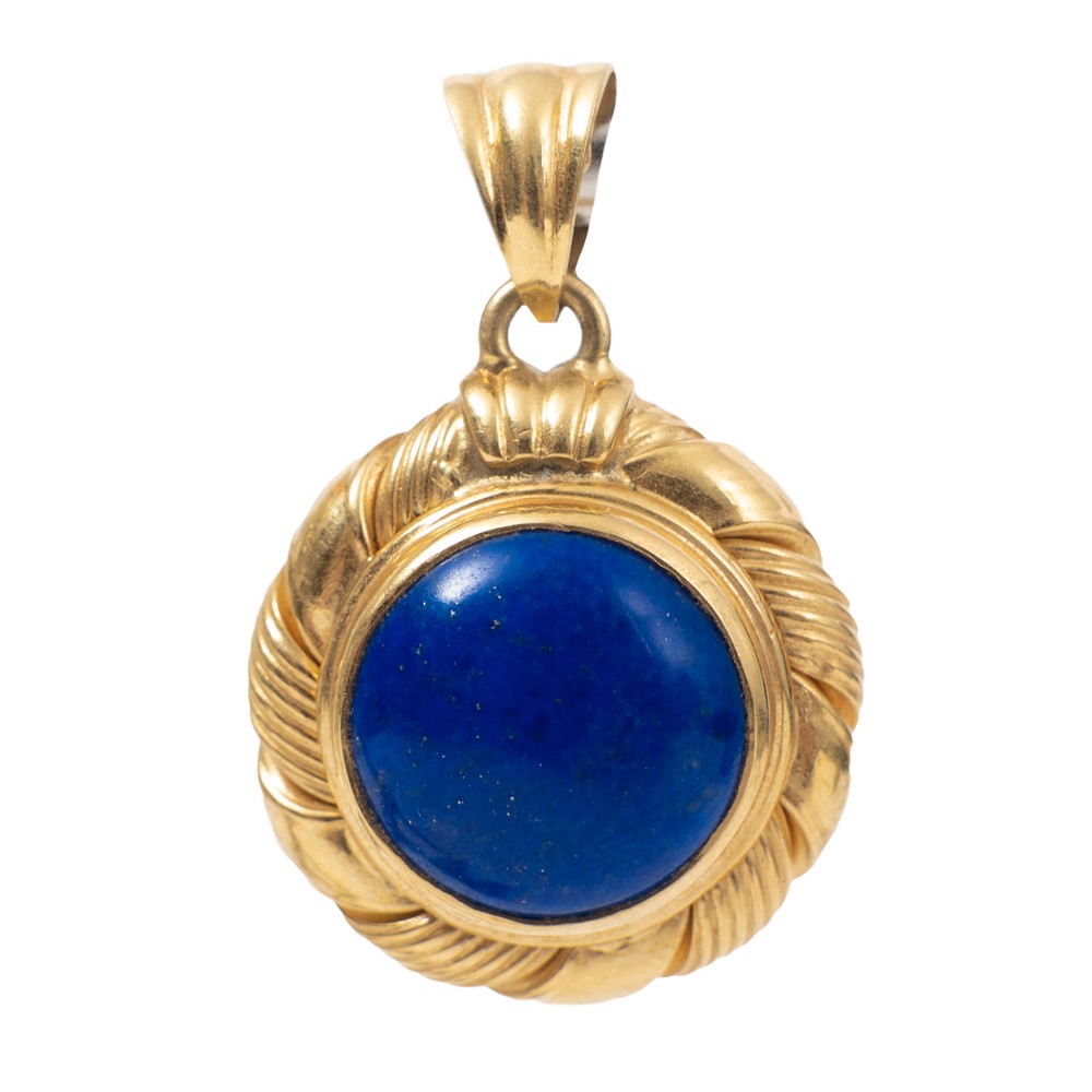 Lot 346 | CIONDOLO in oro giallo 18 KT e cabochon in lapis (g. 4,60)