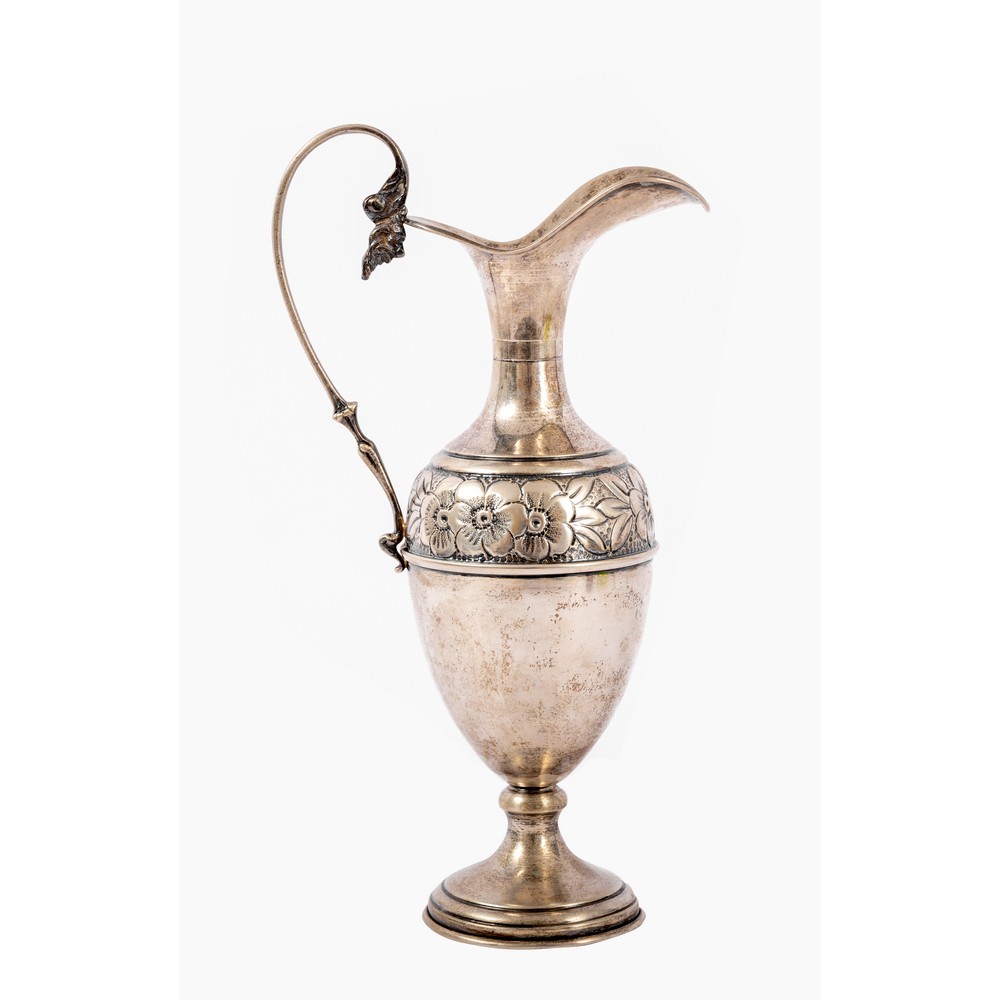 ANFORA in argento sbalzato a motivo floreale e fogliaceo. Punzone argentiere 205 PA (g. 510) (ammaccatura a alla base)
