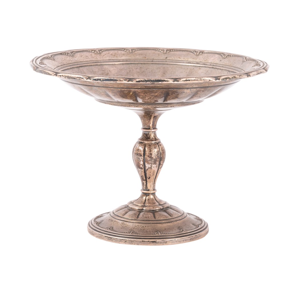 Alzata in argento sterling, filled base, monogrammata a centro (g. peso lordo 377).