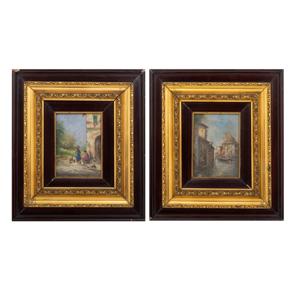 PITTORE DEI PRIMI DEL '900, Due oli su cartoncino