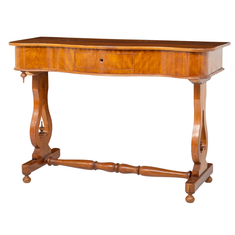 SCRITTOIO VITTORIANO di forma sagomata in legno di mogano.