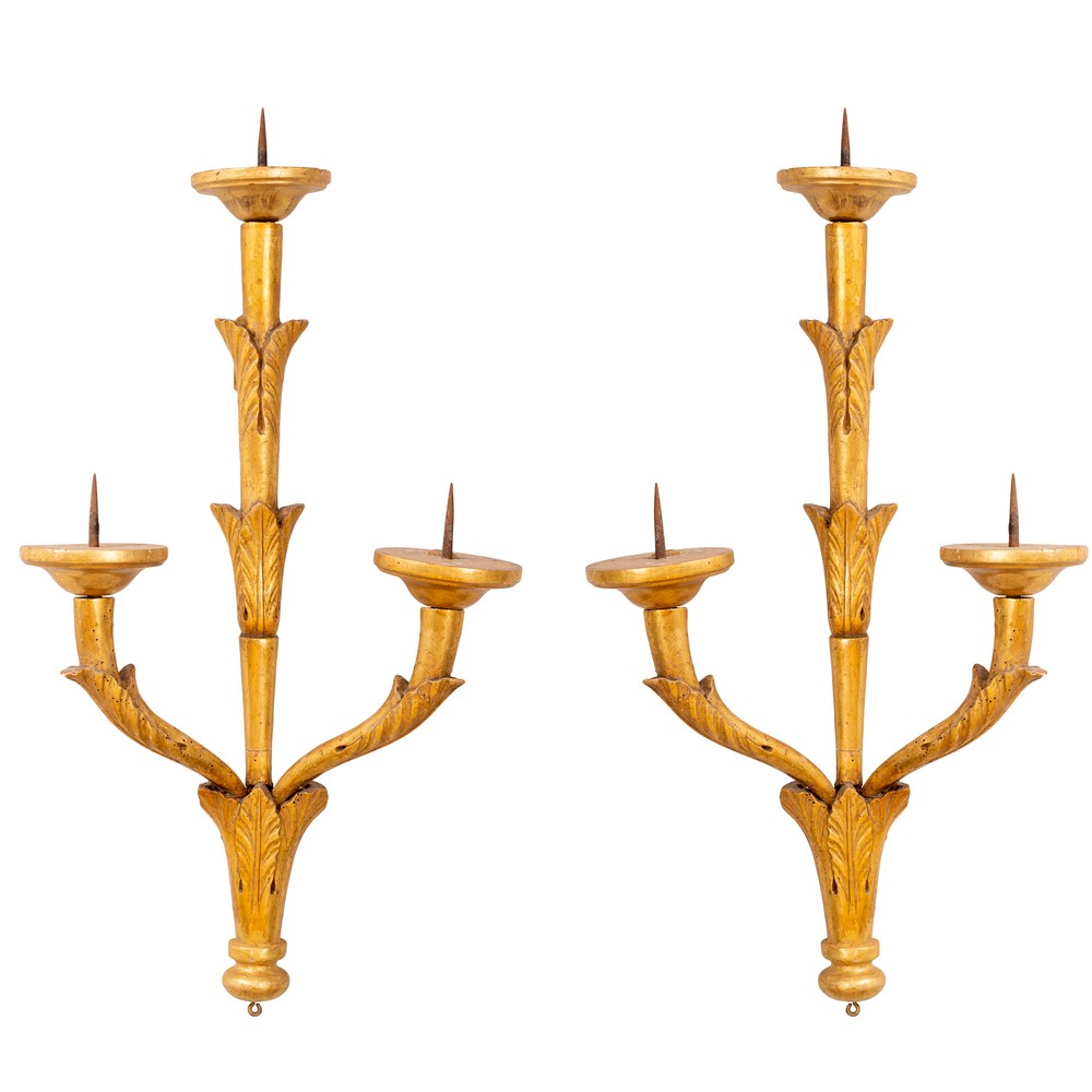 COPPIA DI APPLIQUE a due luci in legno laccato e dorato ad oro zecchino.