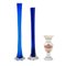 Due vasi in vetro e vasetto in opaline con perfili in oro (sbeccature).