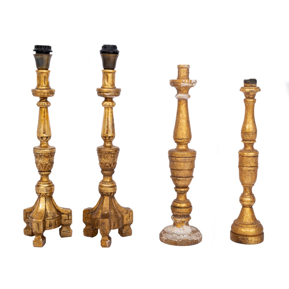 Lot 764 | QUATTRO CANDELIERI in legno dorato