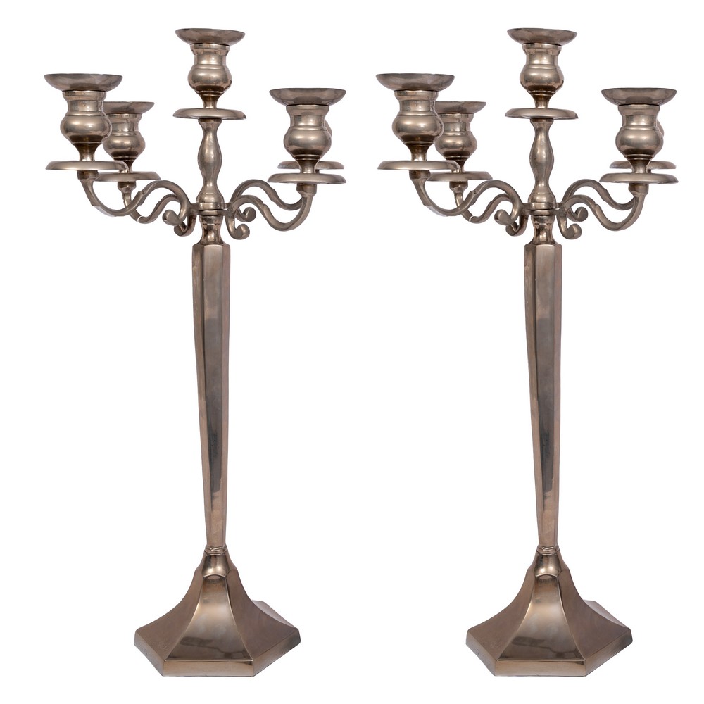 GRANDE COPPIA DI CANDELABRI a 5 fiamme in metallo argentato
