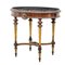 TAVOLINO di forma ovale in legno di noce con perfili dorati, piano in marmo nero portoro.