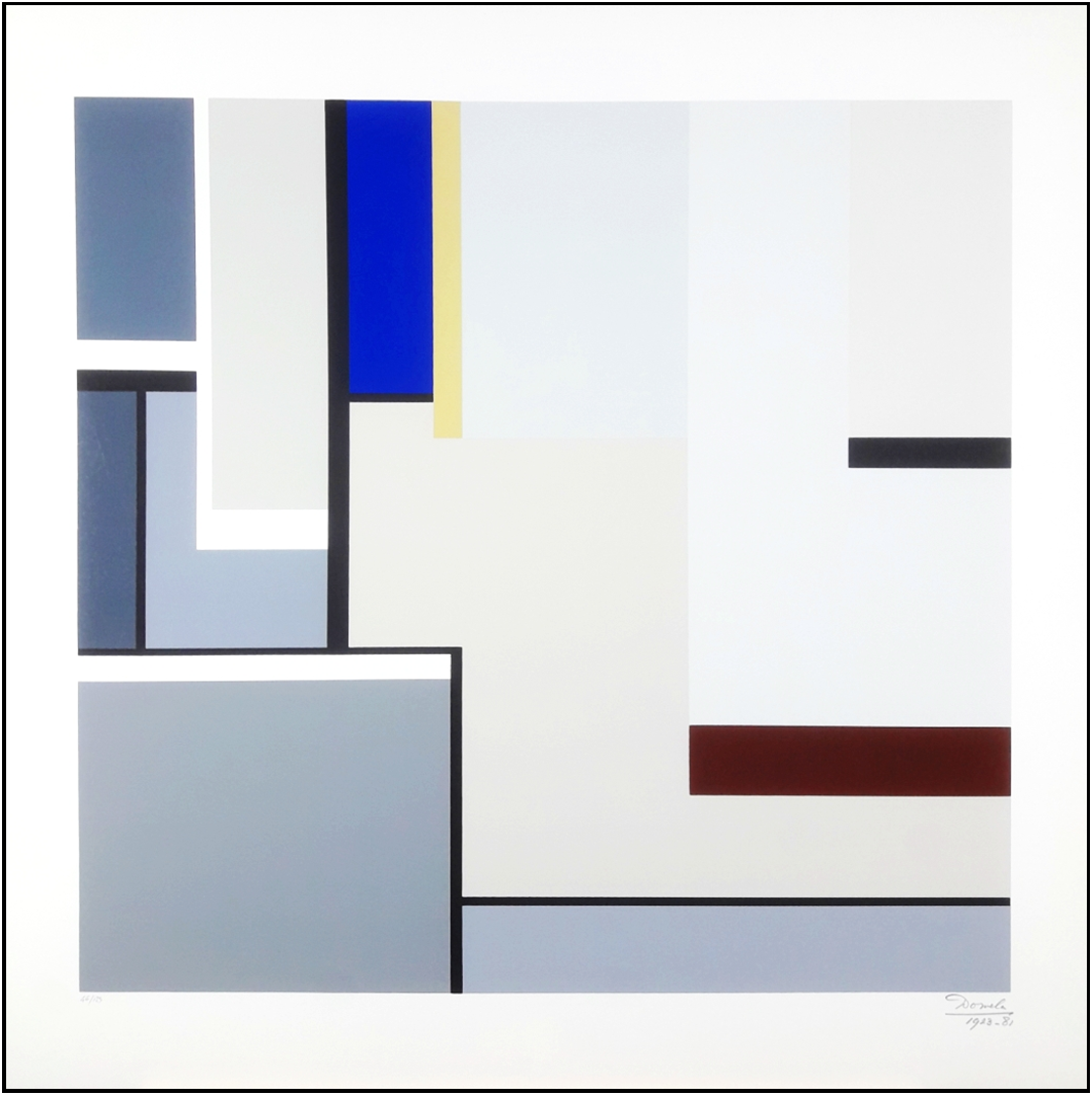 DOMELA CESAR Amsterdam 1900 - Parigi 1992 "Geometrical composition n. 4" Serigrafia su cartone Fabriano cm 68x68 del 1923/81. Firmata e datata sul fronte in basso a destra, tiratura 46/125 a sinistra. Facente parte della cartella "Exacta - dal Costruttivismo all'arte sistematica 1918-1985".