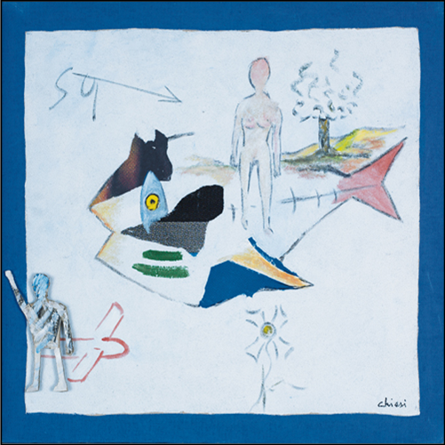 CHIESI GIORGIO Felina (RE) 1941 - Busseto (PR) 2021 "Dispersi sull’isola" Tecnica mista e collage su tela cm. 80x70, firmato in basso a destra. Dichiarazione d'autenticità ed archiviazione dell'artista su foto.