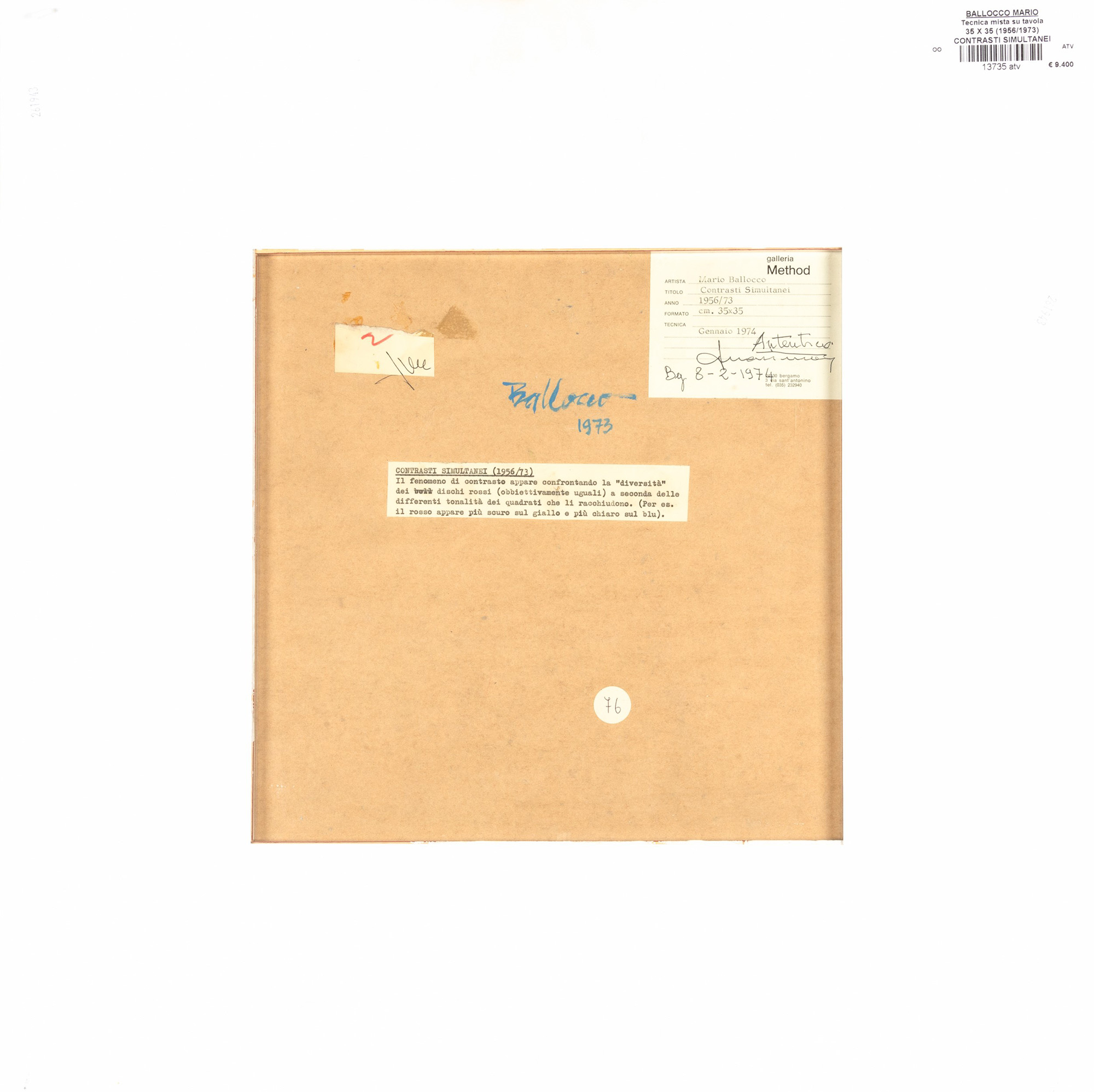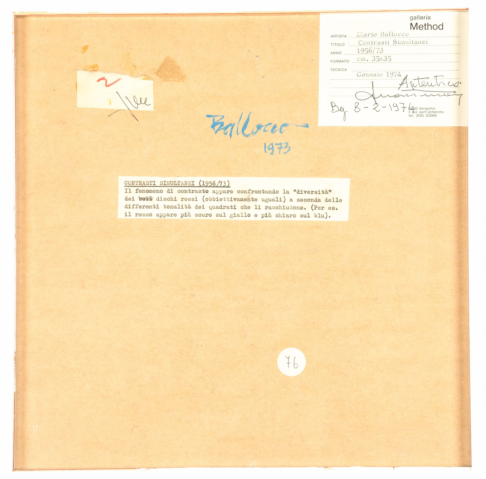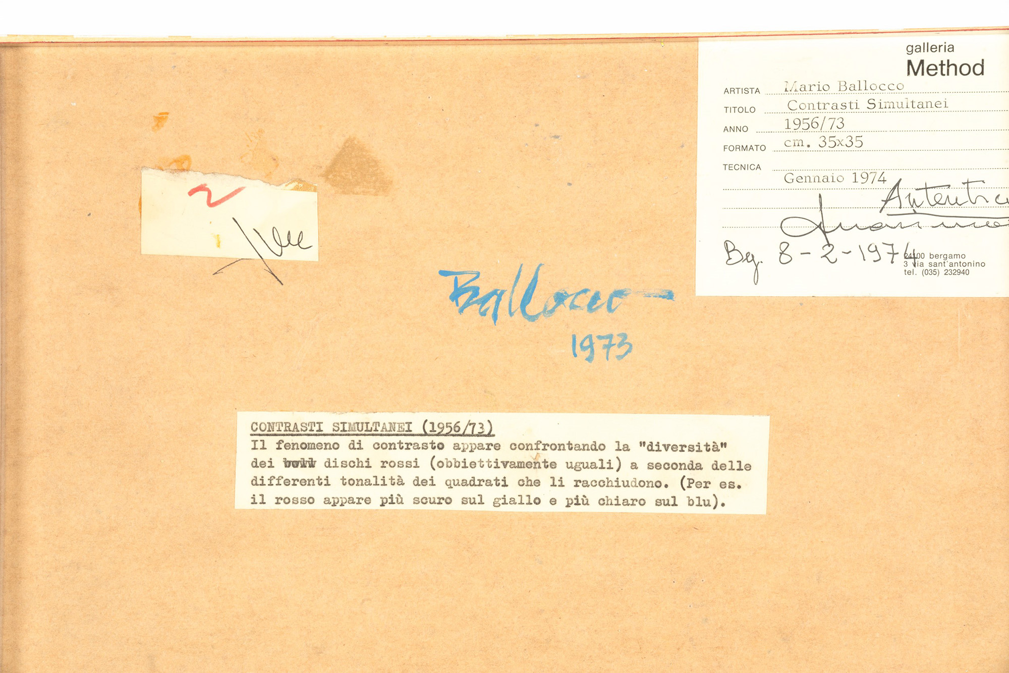 Opera registrata presso l'Associazione Archivio Mario Ballocco, Milano in data 28 ottobre 2022, con il n. 2.56/73.100 e accompagnata da certificato di autenticità