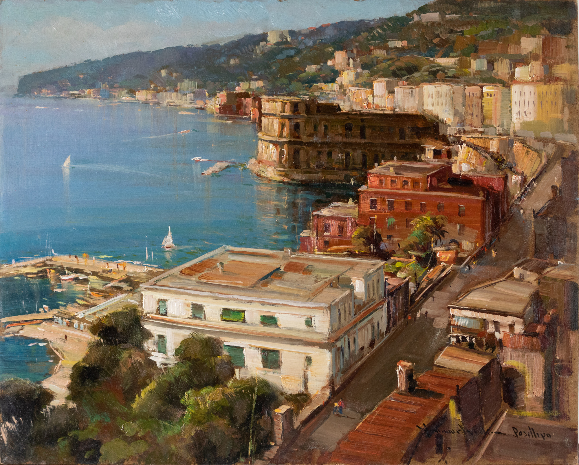 Previous Lot 31 Next Giosi Casa d'Aste - Via Atri 37, 80137 Napoli Dipinti XX Secolo Asta N3 Wednesday 21 December 2022 hours 15:00 (UTC +01:00) Vincenzo Aprile (Napoli 1952) Vincenzo Aprile (Napoli 1952), Posillipo, Olio su masonite, 40x50 cm.