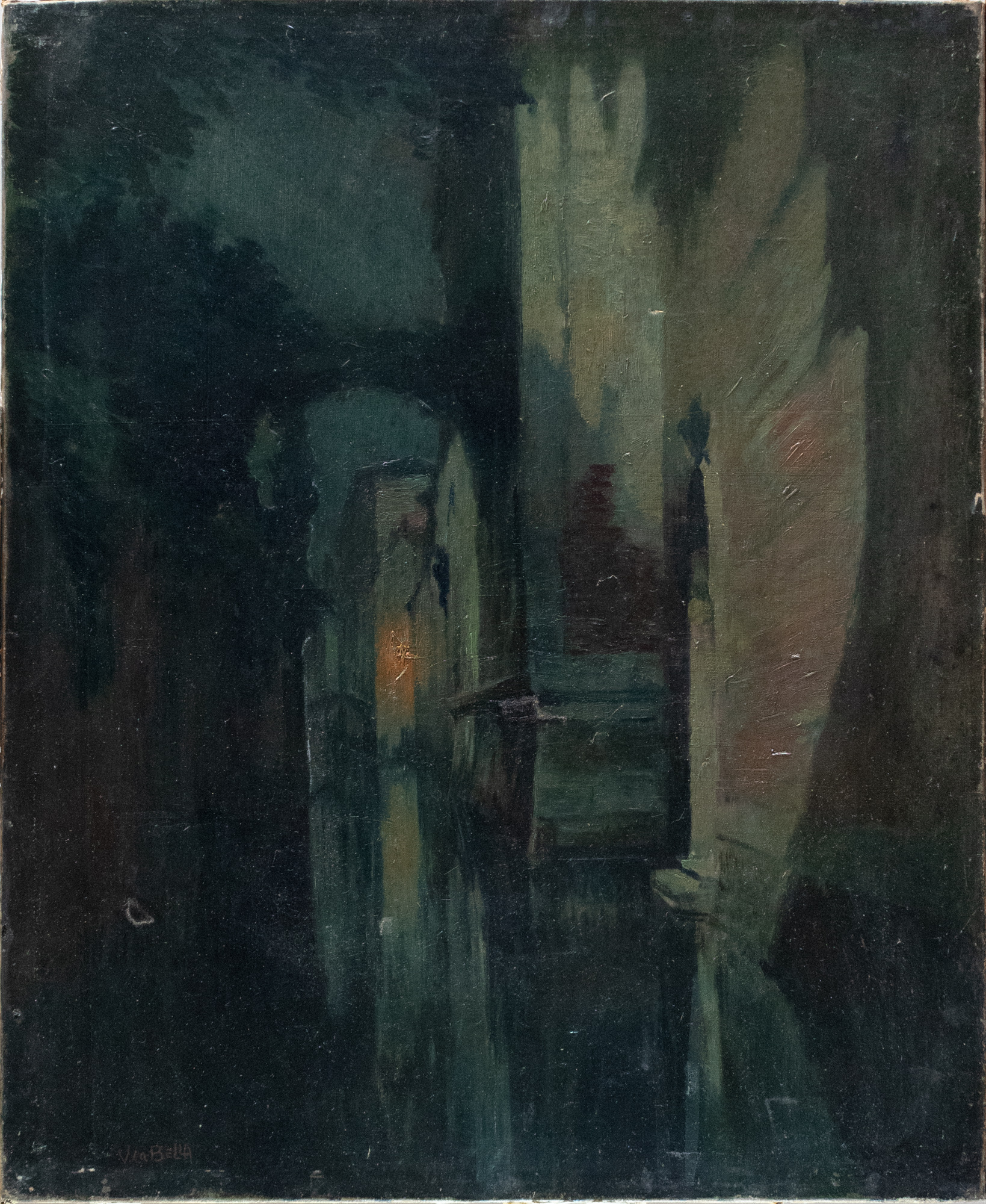 Vincenzo La Bella (Napoli 1872 - 1954), Notturno veneziano, Olio su tela, 60x50 cm.