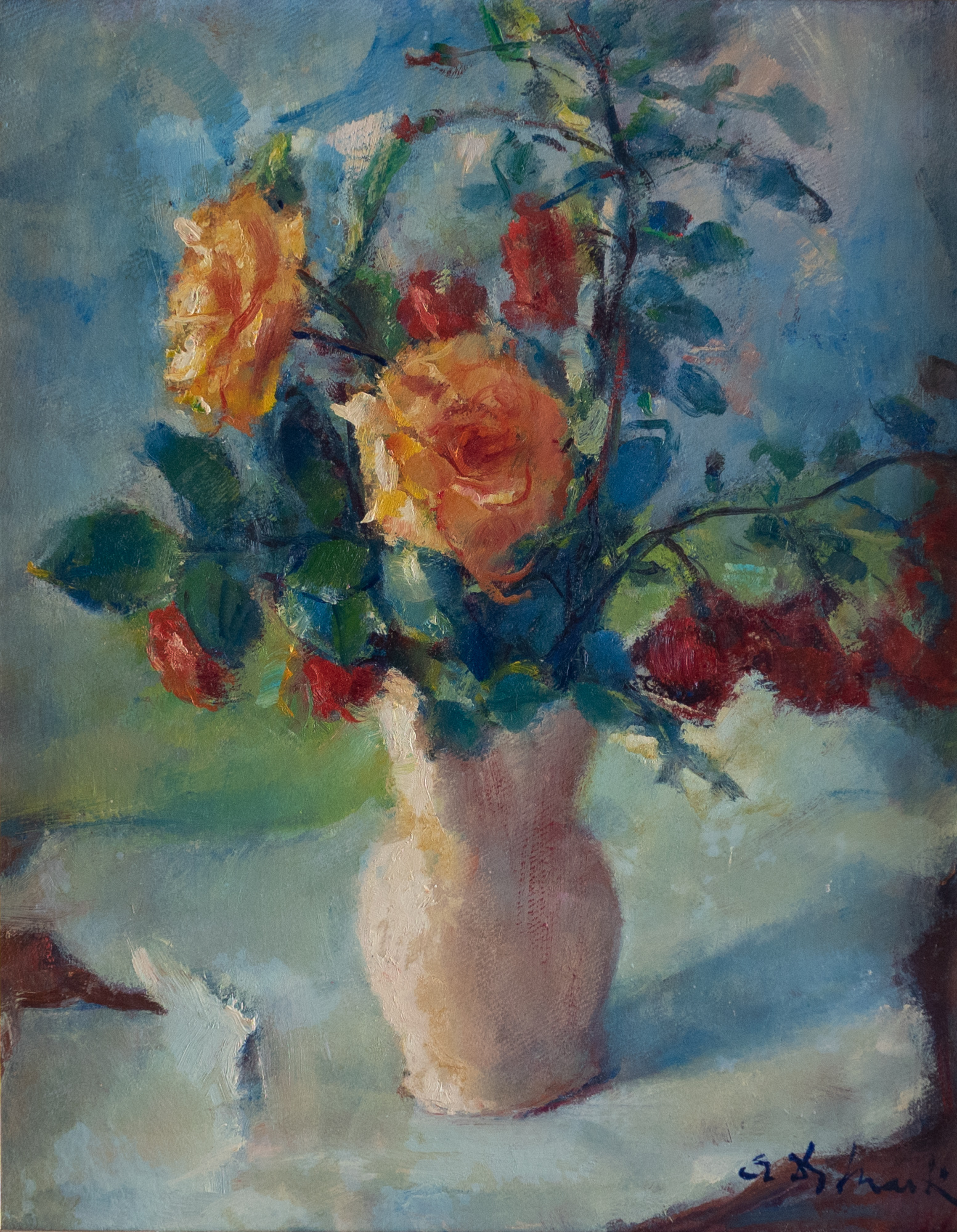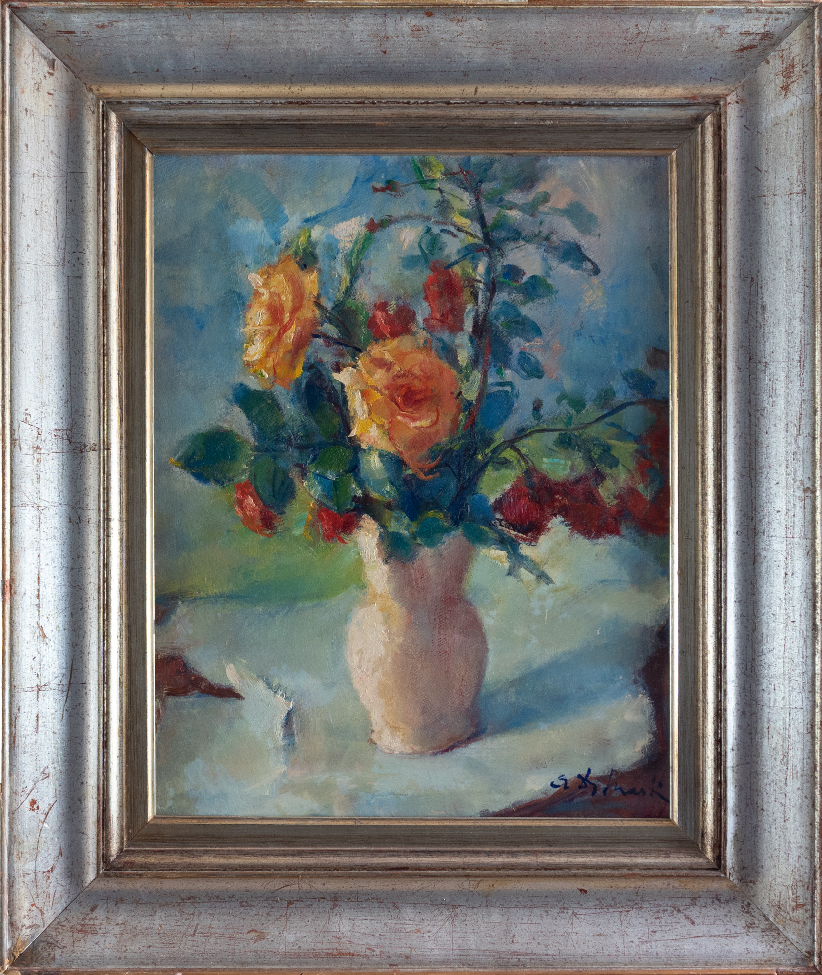 Previous Lot 48 Next Giosi Casa d'Aste - Via Atri 37, 80137 Napoli Dipinti XX Secolo Asta N3 Wednesday 21 December 2022 hours 15:00 (UTC +01:00) Alfredo De Martino (Napoli, 1928) Alfredo De Martino (Napoli, 1928), Rose, Olio su cartone, 60x50 cm.