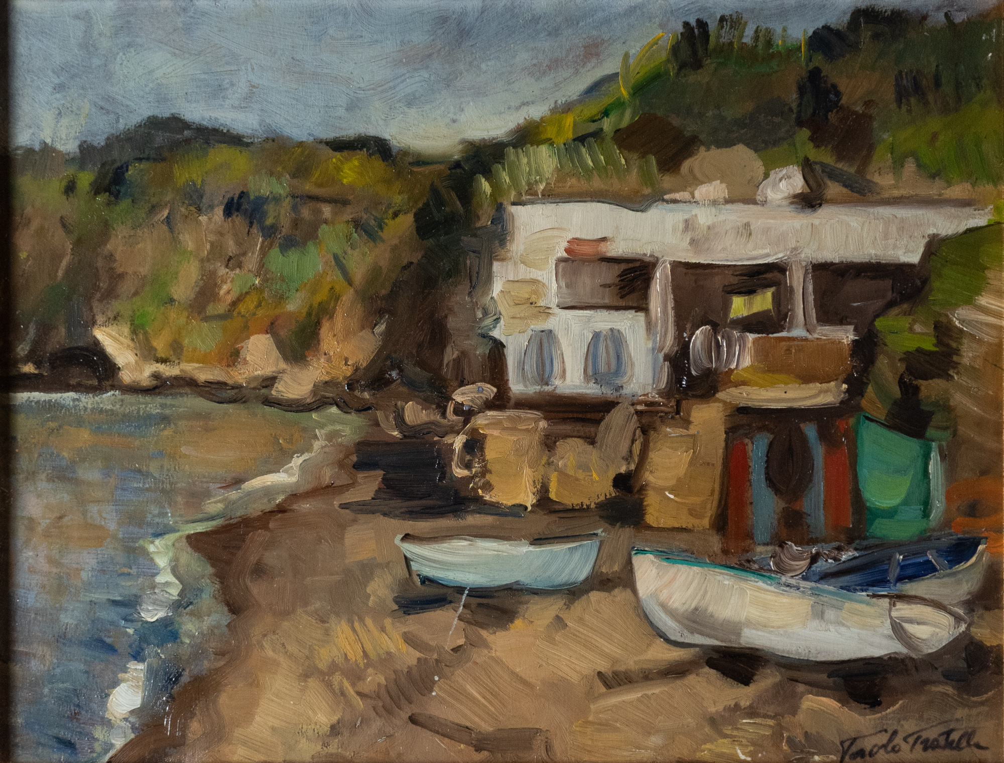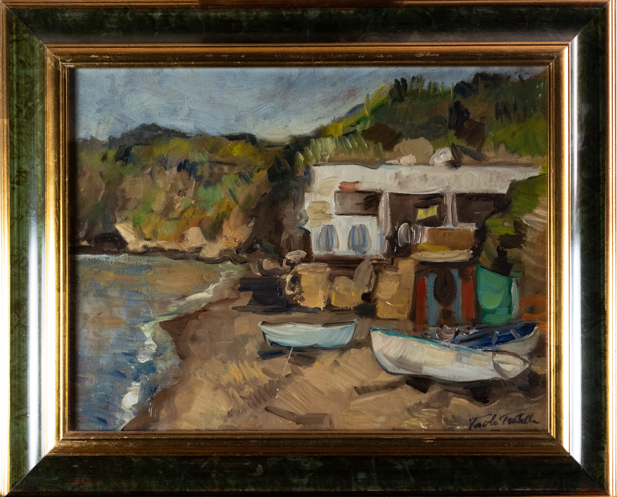 Paolo Pratella (Napoli 1892 - 1980), Barche a secco, Olio su tavola, 34x45,5 cm.