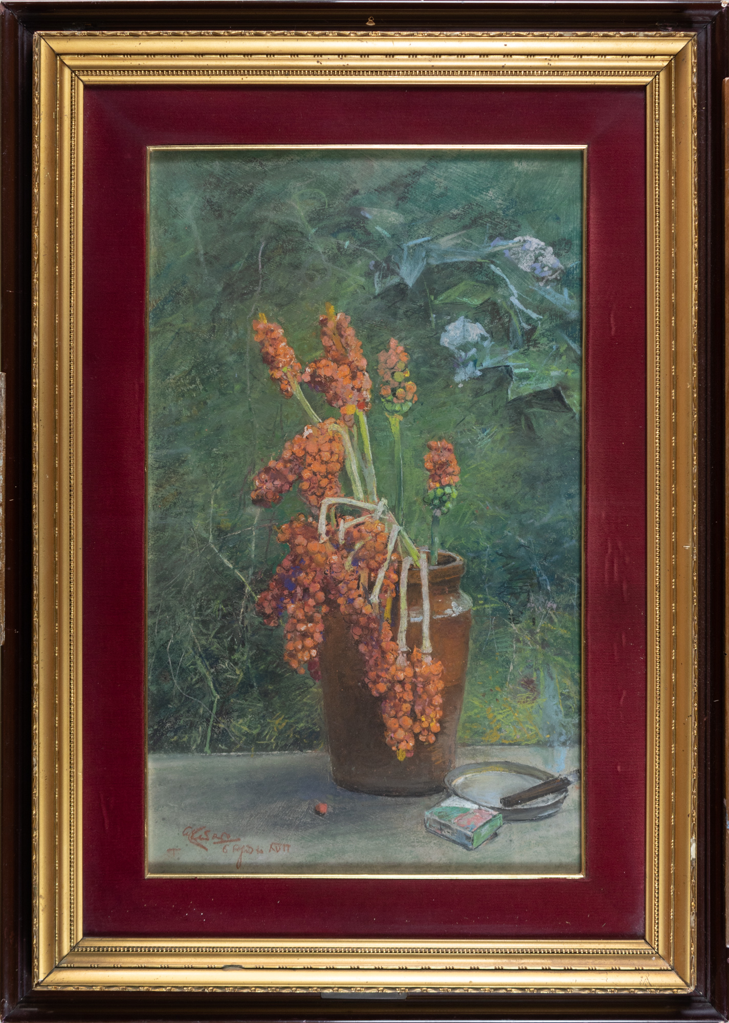 Giuseppe Casciaro (Ortelle, LE 1863 - Napoli 1941), Vaso con fiori, Pastello su cartone, 54x33,5 cm.