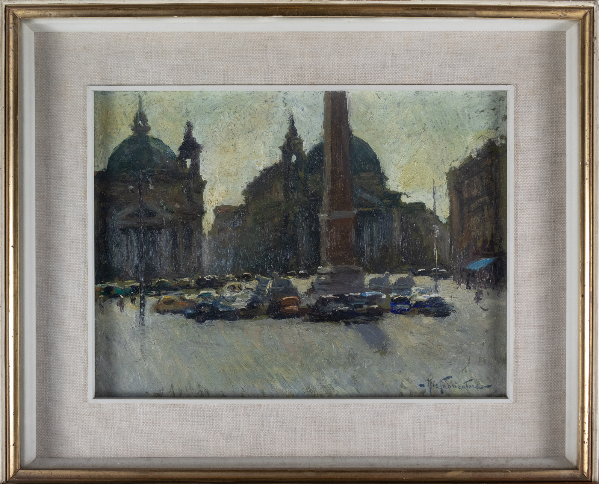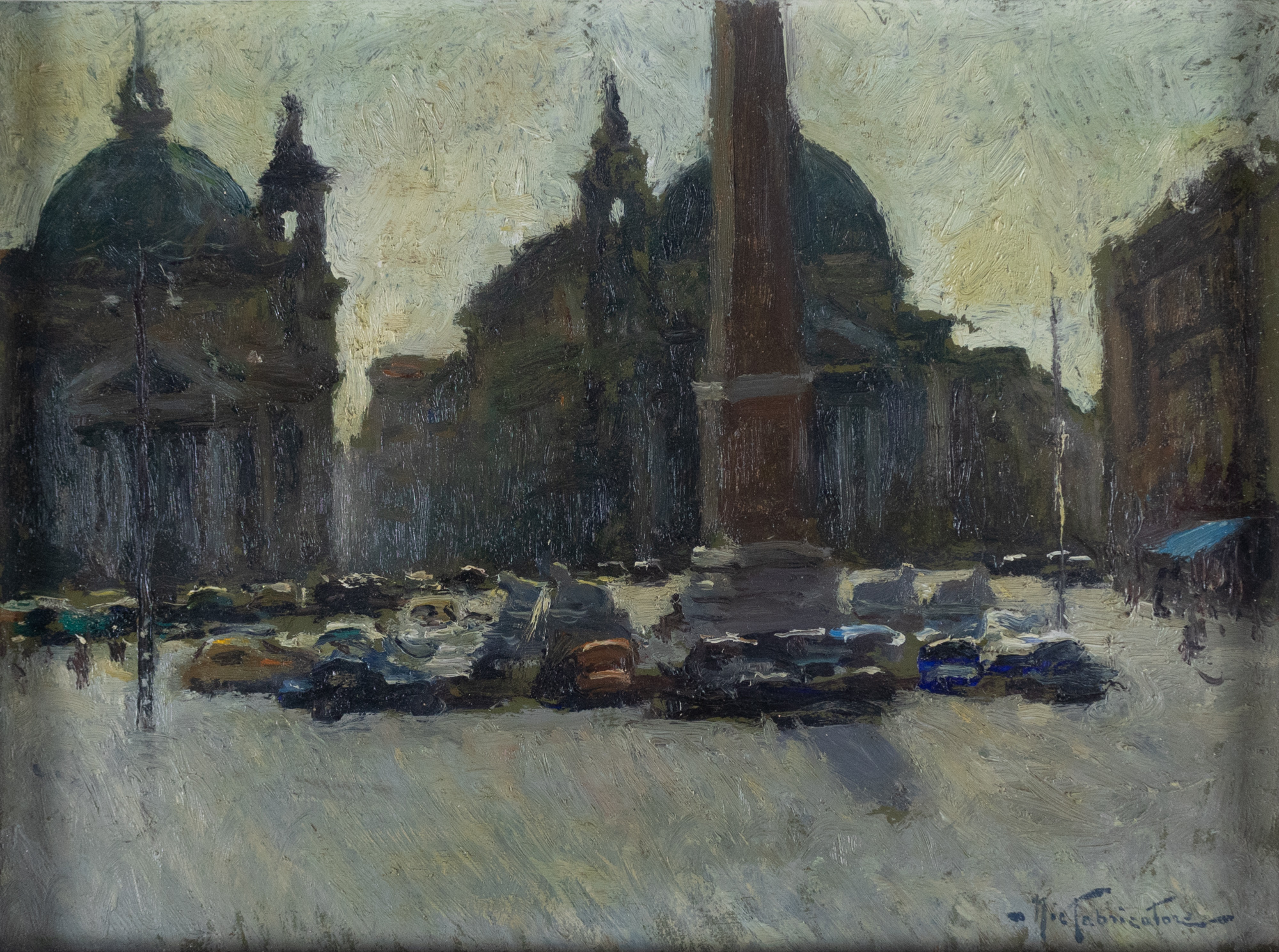Nicola Fabricatore (Napoli 1888 - Roma 1962), Piazza del popolo, Olio su tavola, 30x40 cm.