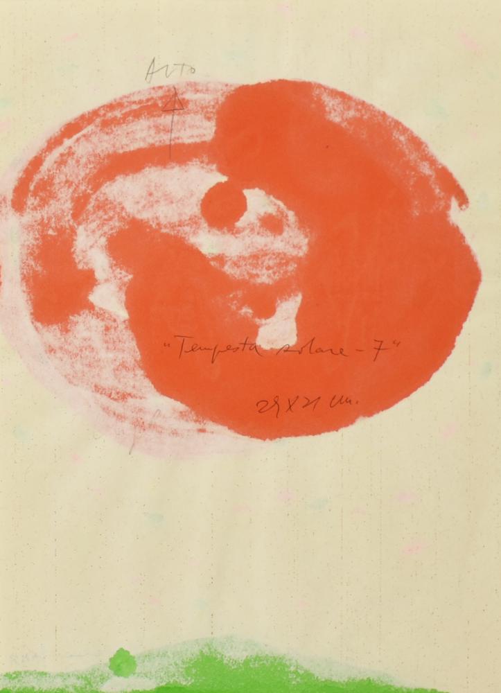 Hsiao Chin, (1935) TEMPESTA SOLARE 7 tecnica mista su carta, cm 29x21 firma...
