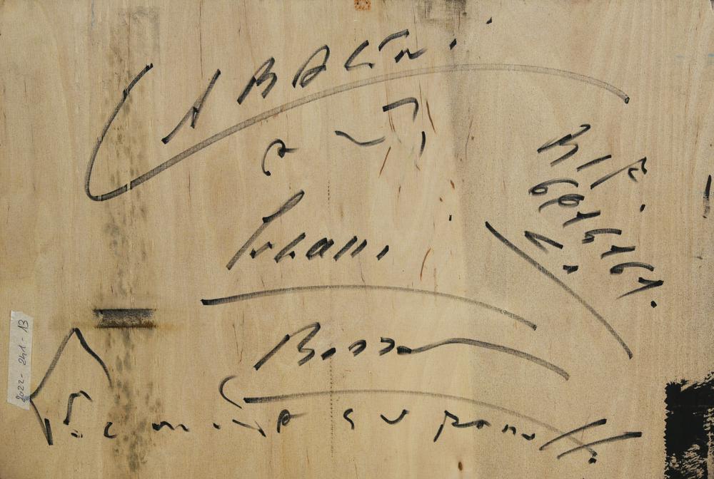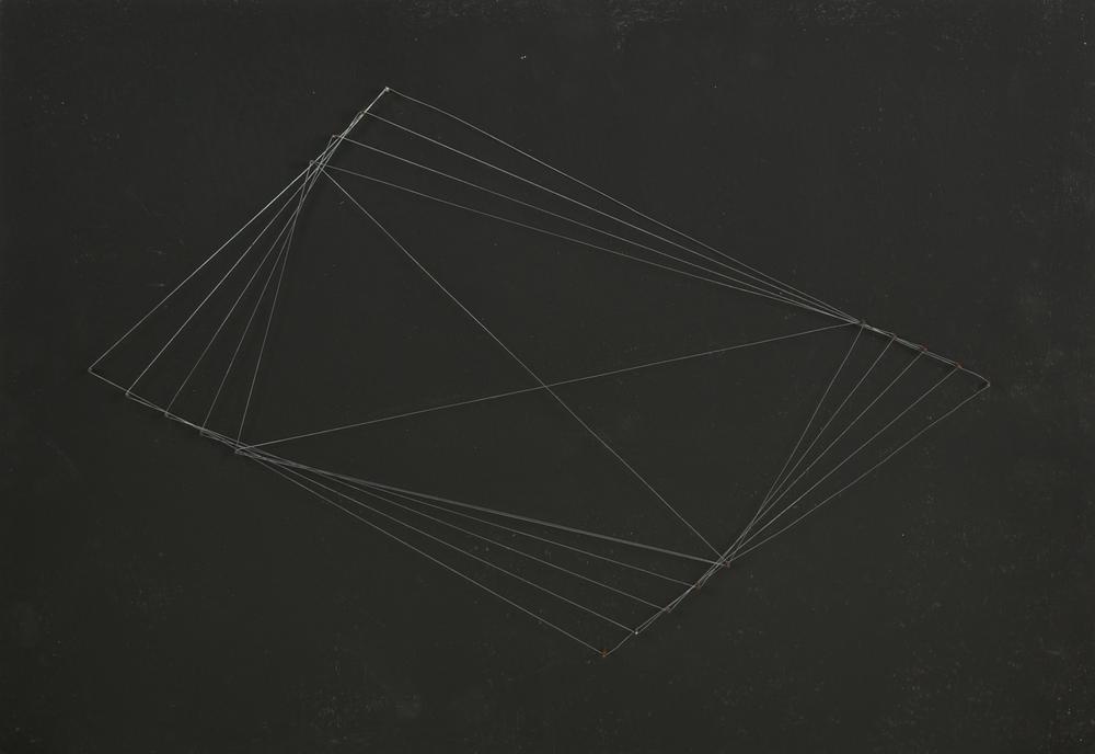 Bruno Caraceni SENZA TITOLO chiodi e fili su tavola dipinta, cm 43x61,5 sul...