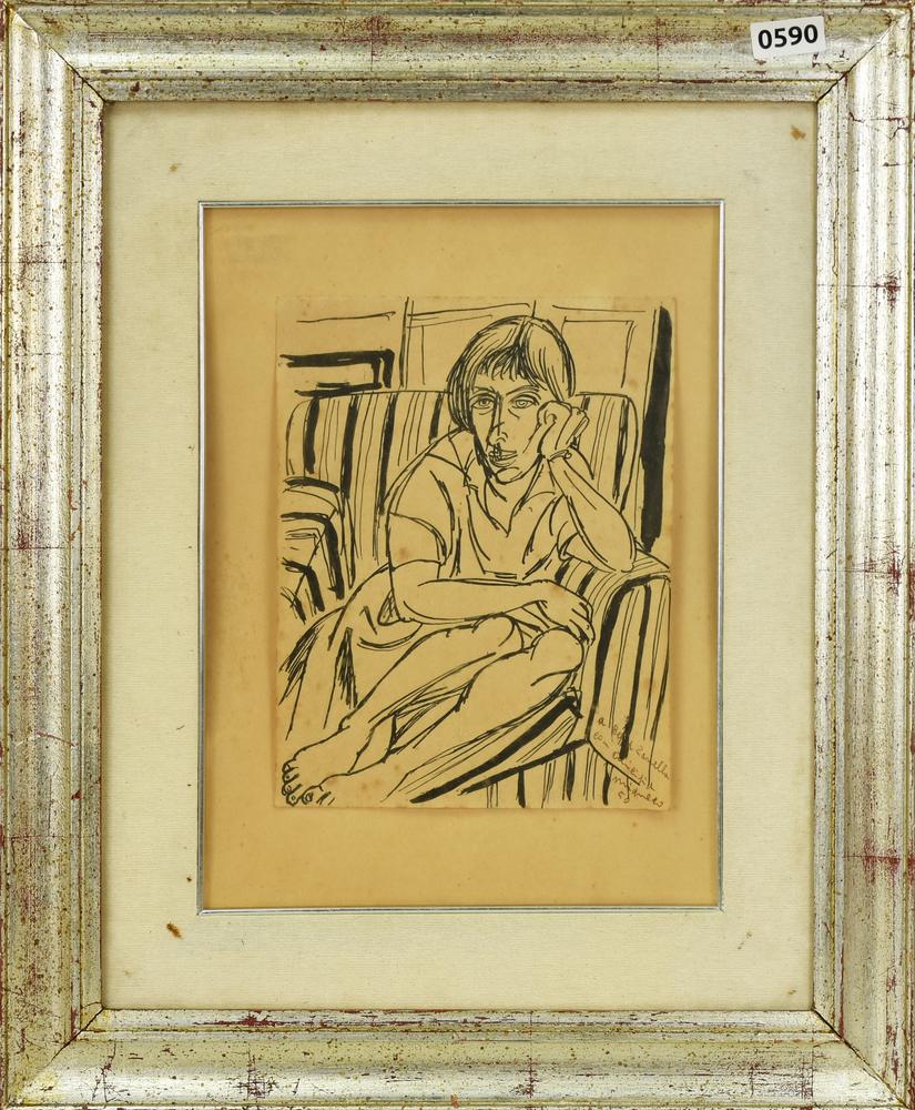 Lot 96 | Giuseppe Migneco, (1908 - 1997) DONNA ASSISA pennafeltro su carta, cm 28x23...